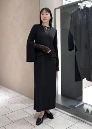 袖はベルスリーブ仕様で、手首から広がるシルエットが手元に華やかさをプラス。