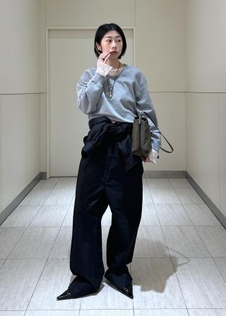 スウェットやカーディガンとレイヤードし、袖口からチラッと出して着るのもアクセントになり可愛いです♡
