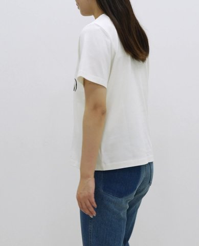 ボディと違う生地を襟まわりにトリミングした、ロゴがキャッチ—なハーフスリーブTシャツ。モードに着こなせるよう、襟ぐりとロゴを同色にすることでポップになりすぎずないようにしているのがこだわりのポイント。 程よくゆとりのあるサイズ感が、こなれた印象に仕上げてくれる一着。