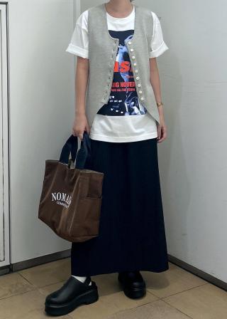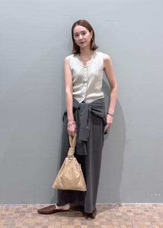 シアーなカットソーとレイヤードした今年らしい着こなしや、夏は一枚でヘルシーに着ていただくのも素敵。