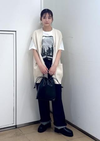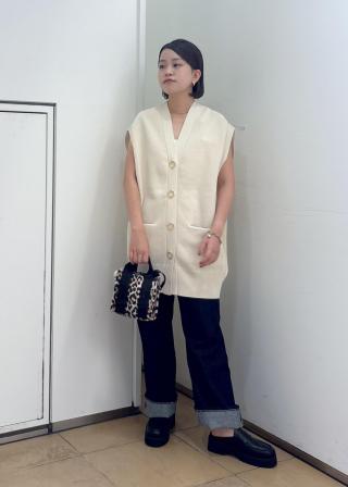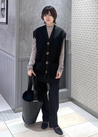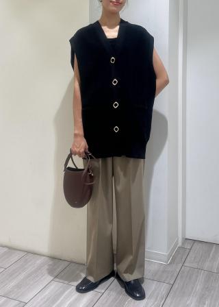 トップスとしてもジレとしても着用可能な汎用性のあるニットジレ。