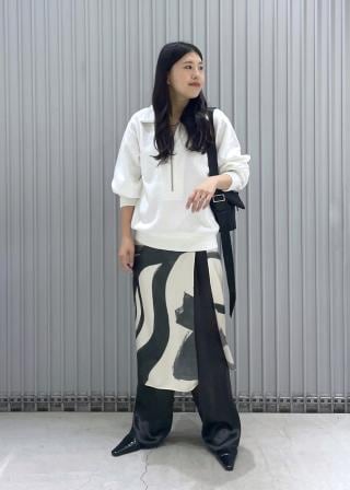 落ち感のある生地で着用時に自然と出るドレープが上品さをプラス。