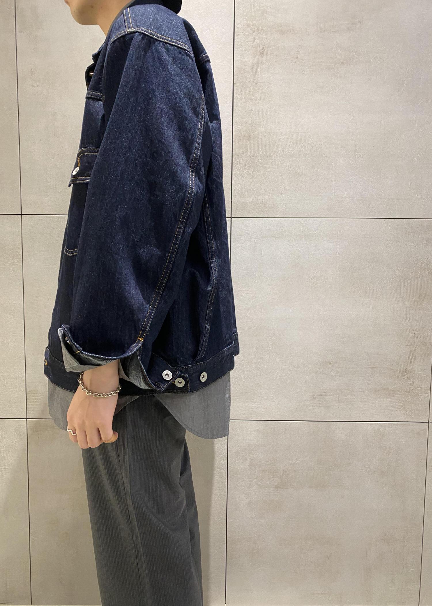 カジュアルな印象の強いデニムジャケットですが他のアイテムをグレーで統一し、アダムエロペらしいモードな雰囲気にまとめて見ました。