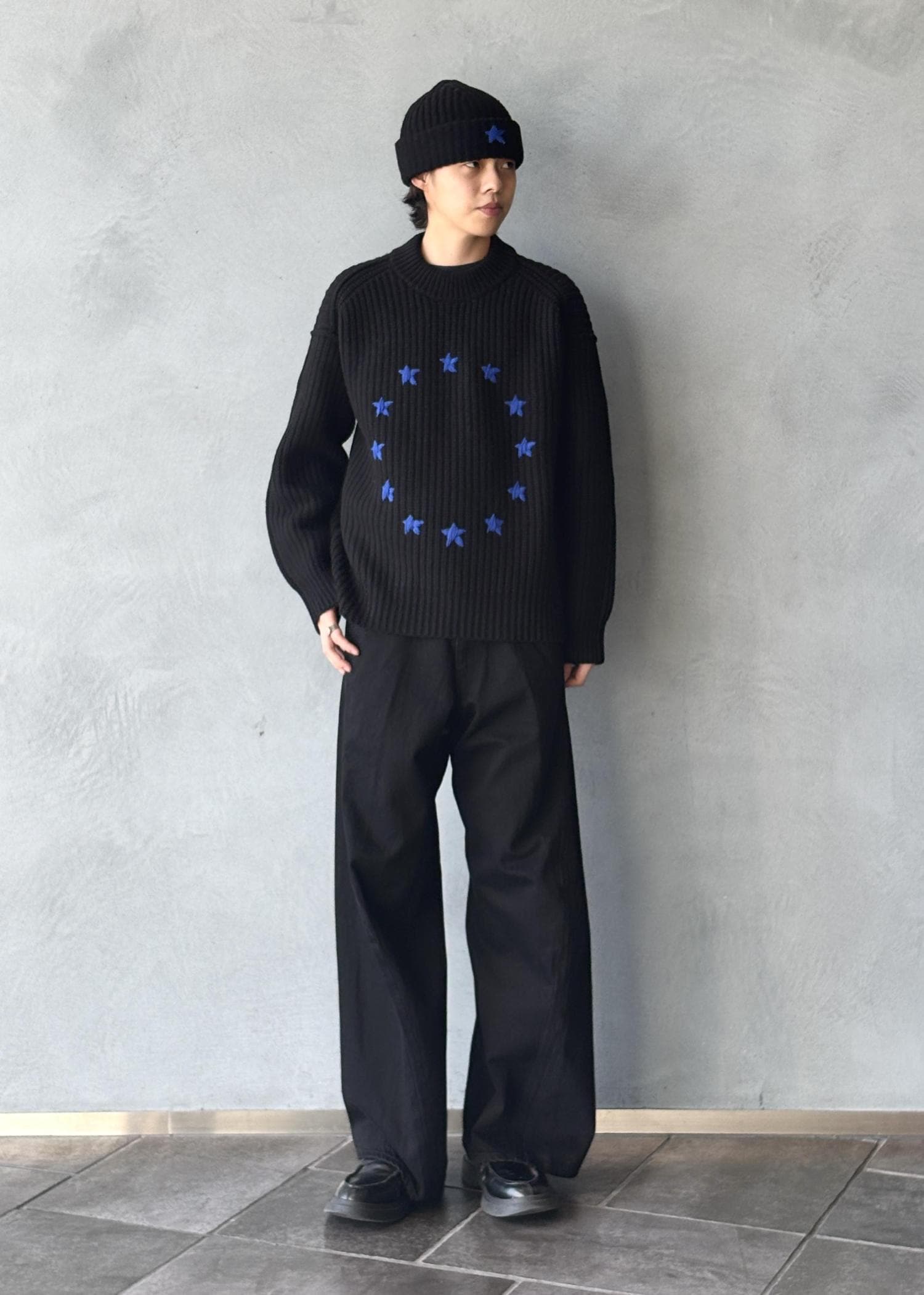柄on柄でも、同じトーンで揃えれば意外とすんなりまとまります。