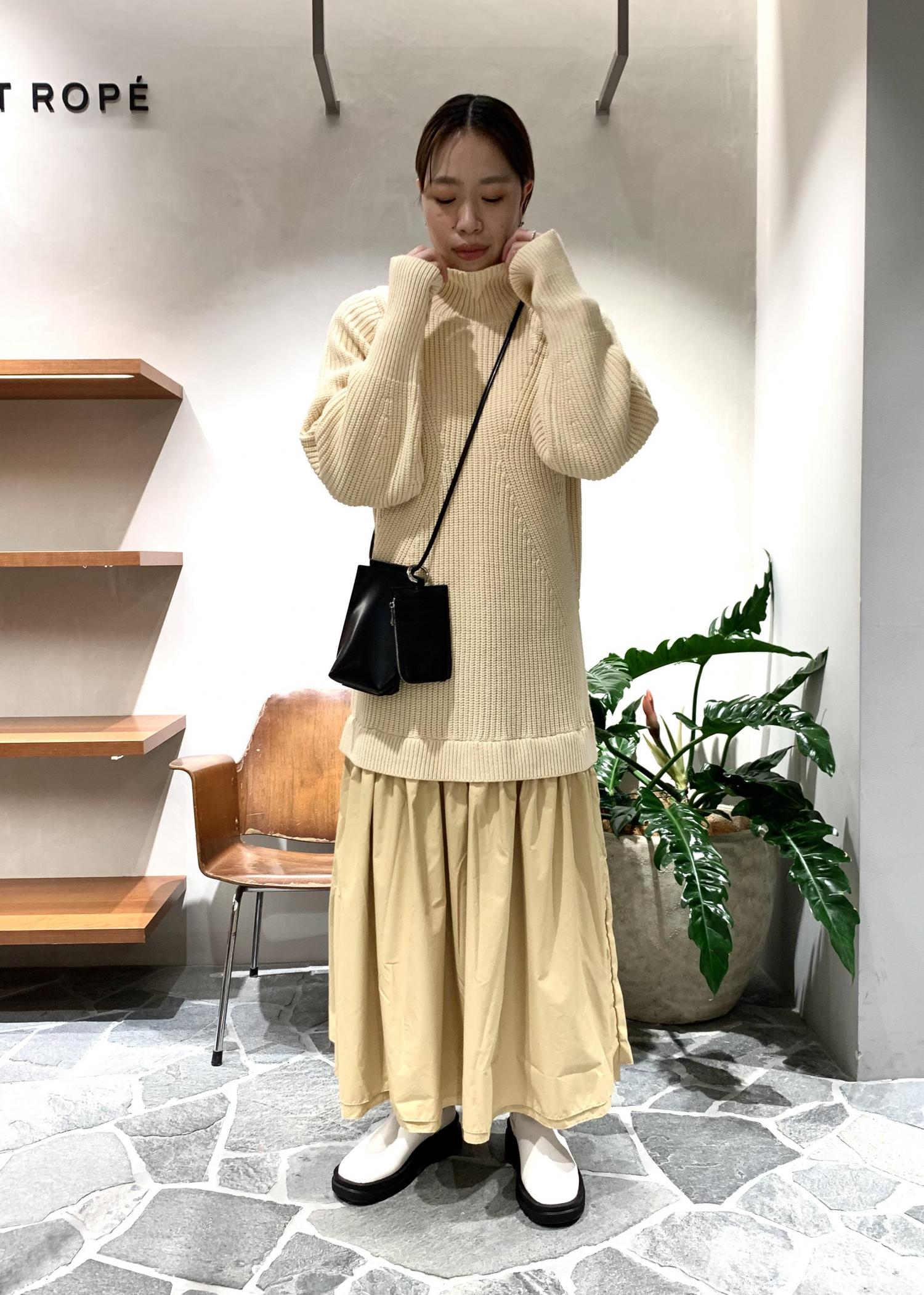 ハリ感のあるスカートはモードでこなれた印象にも。