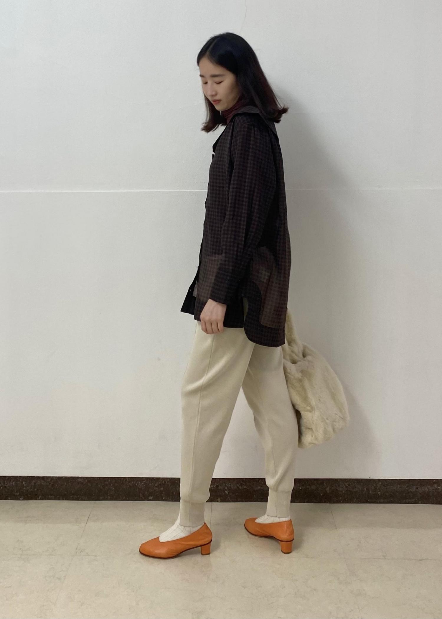 薄手のカットソーを中に着てネックや袖から覗かせたり楽しい1着です。