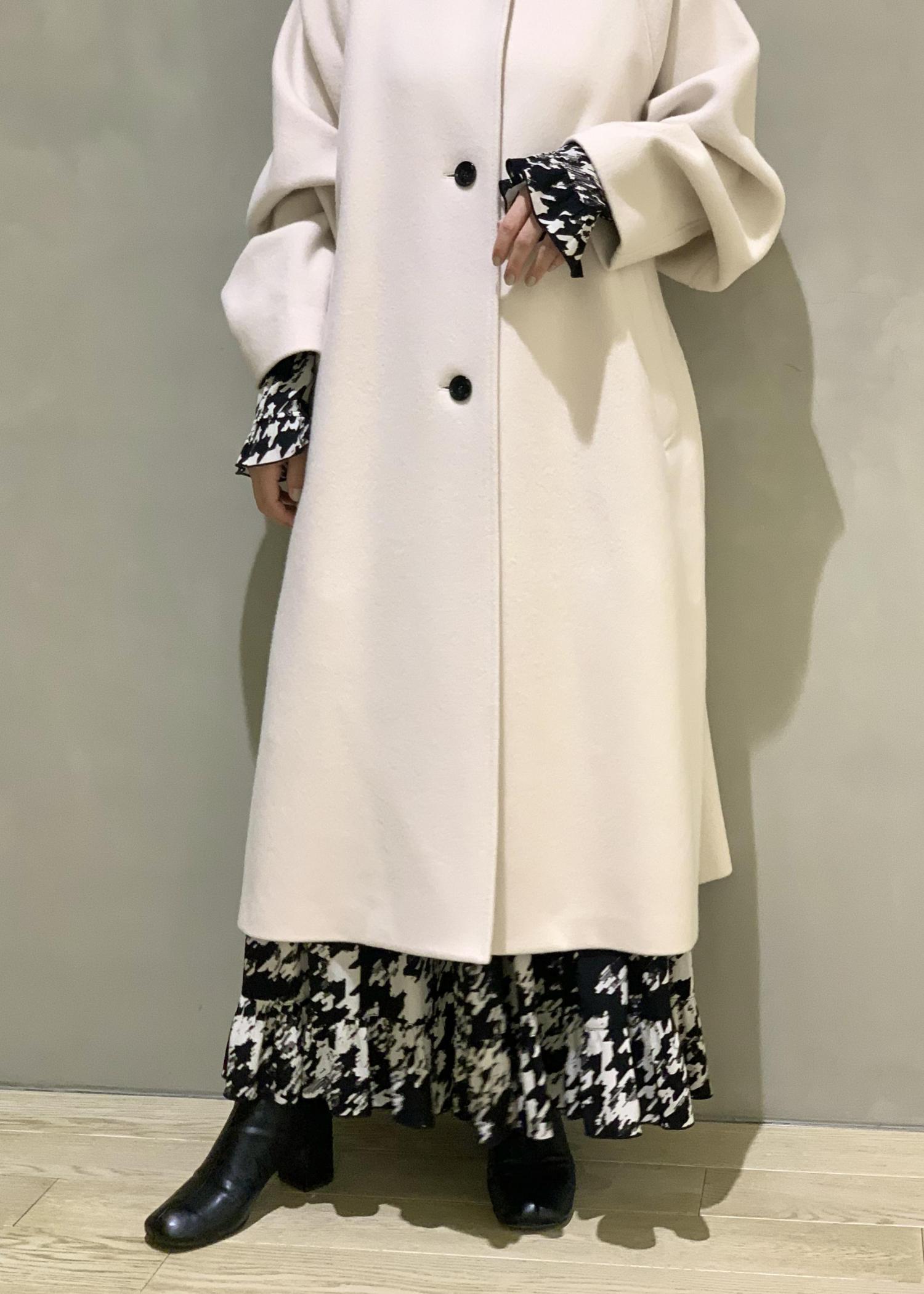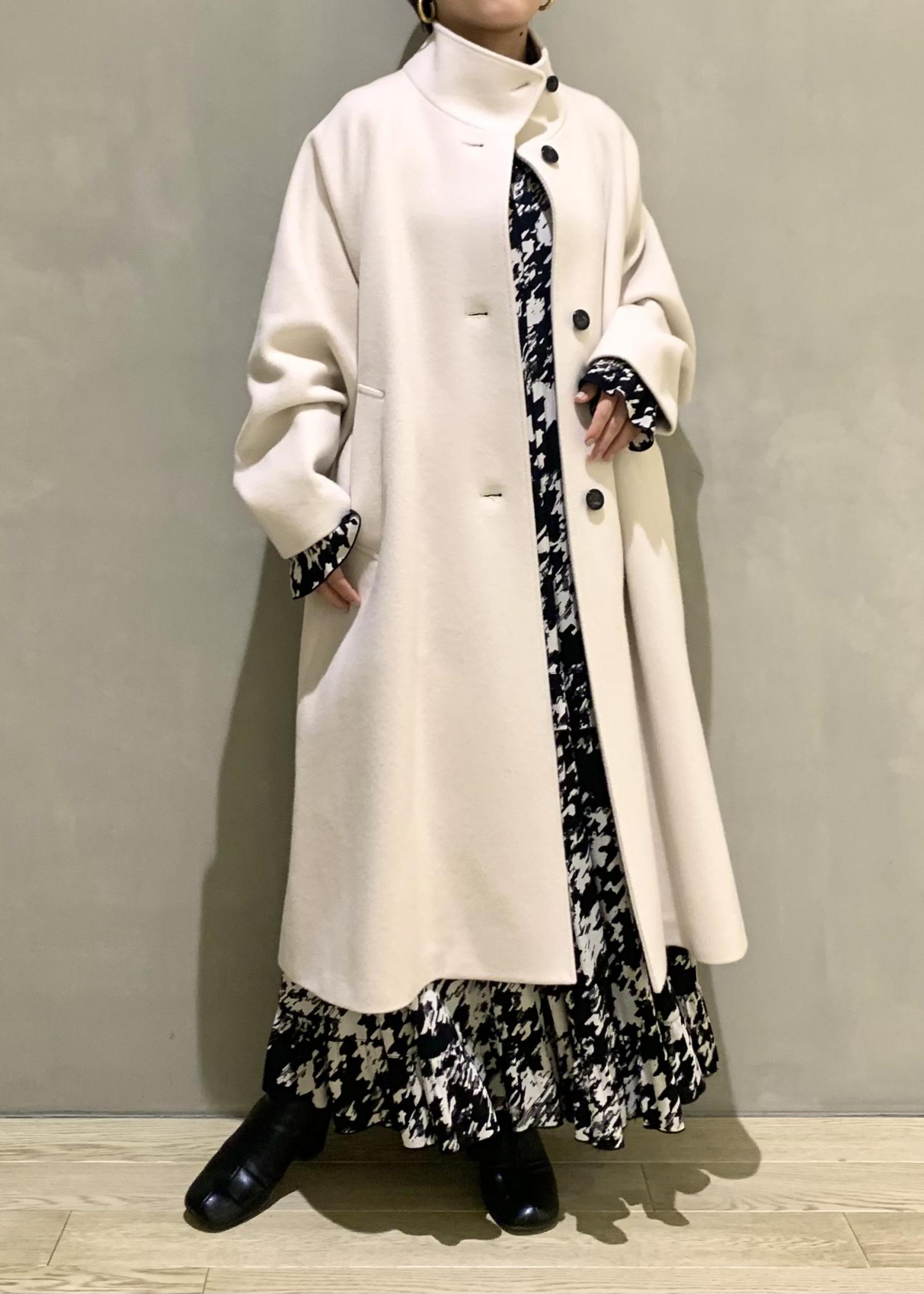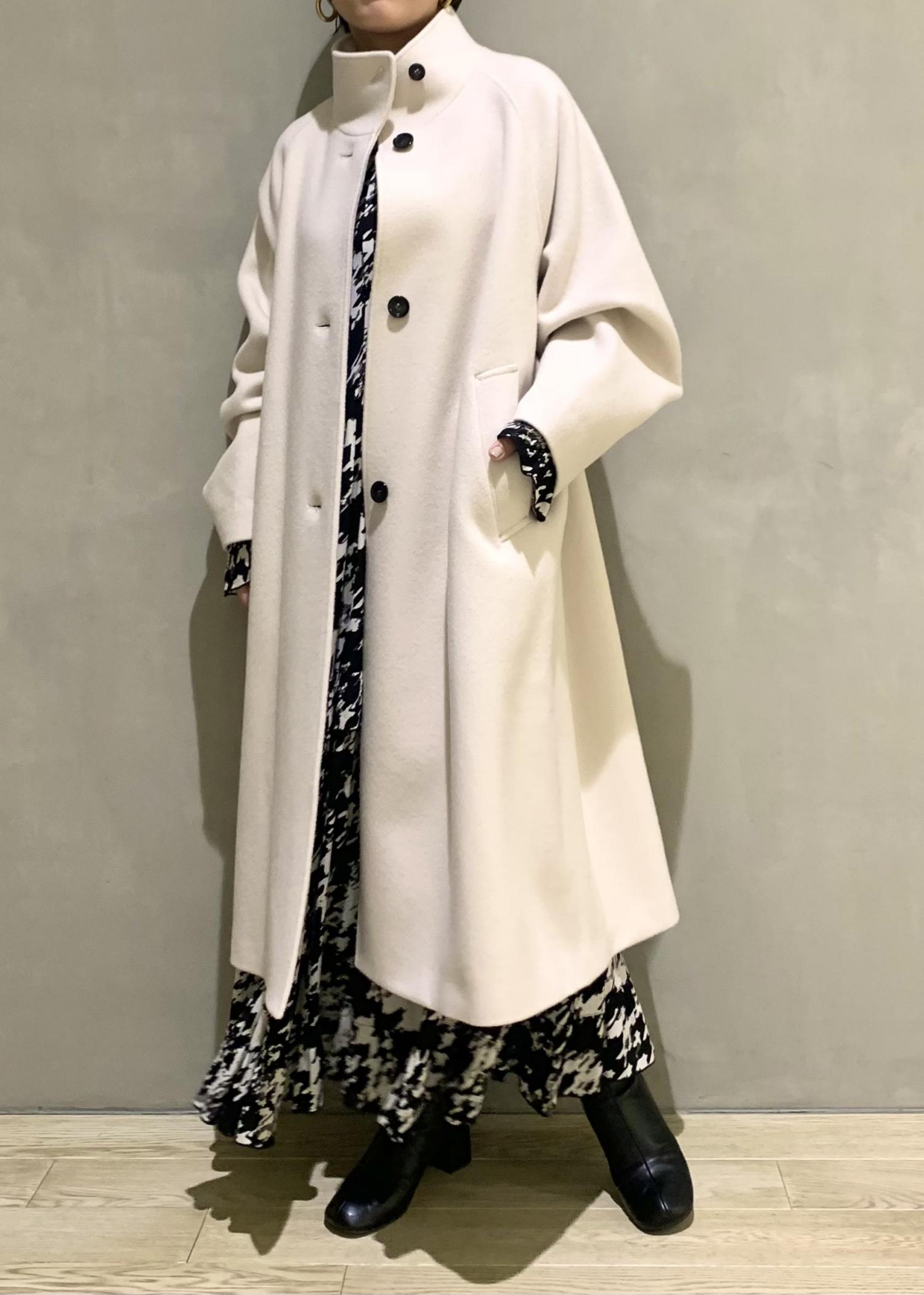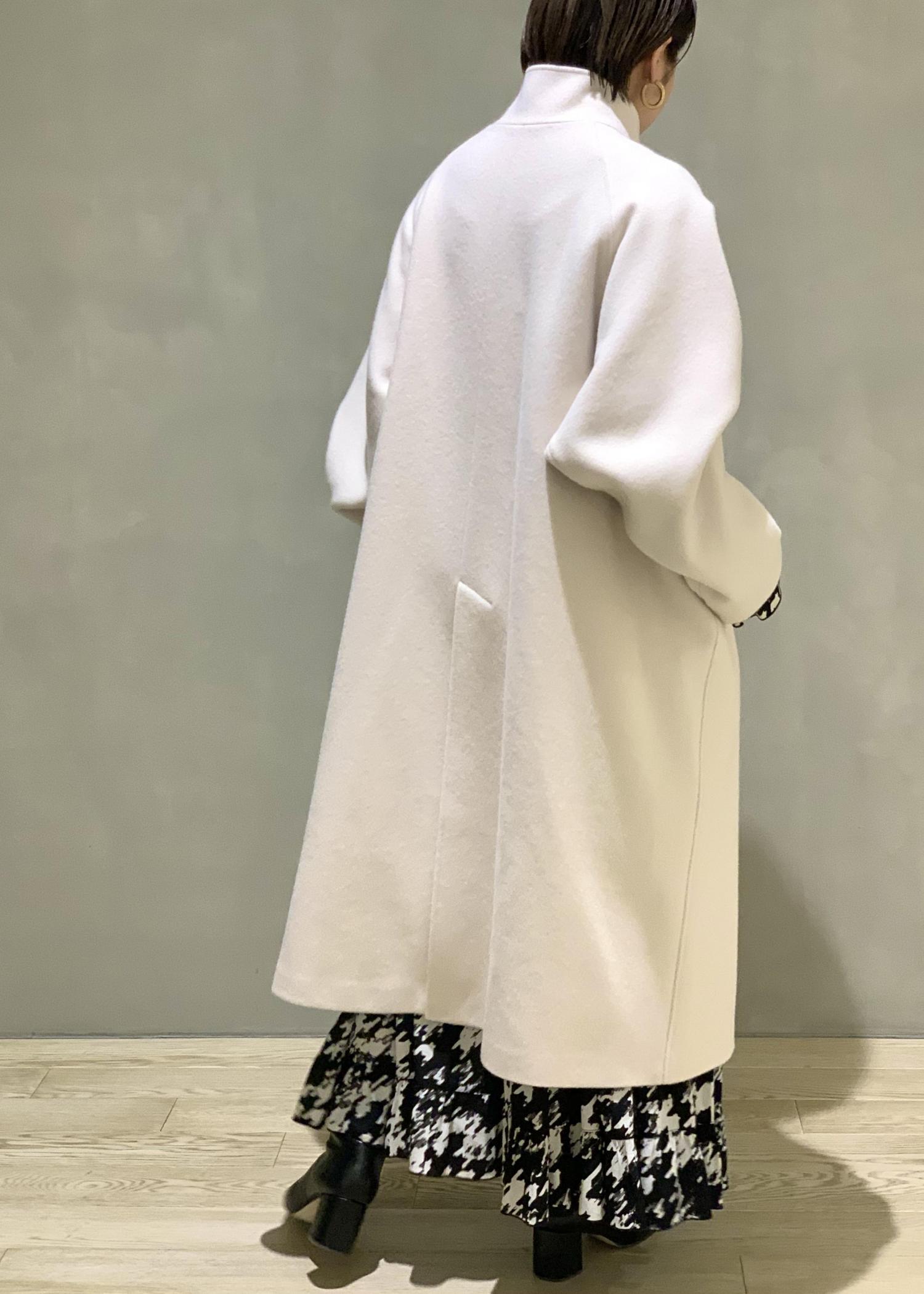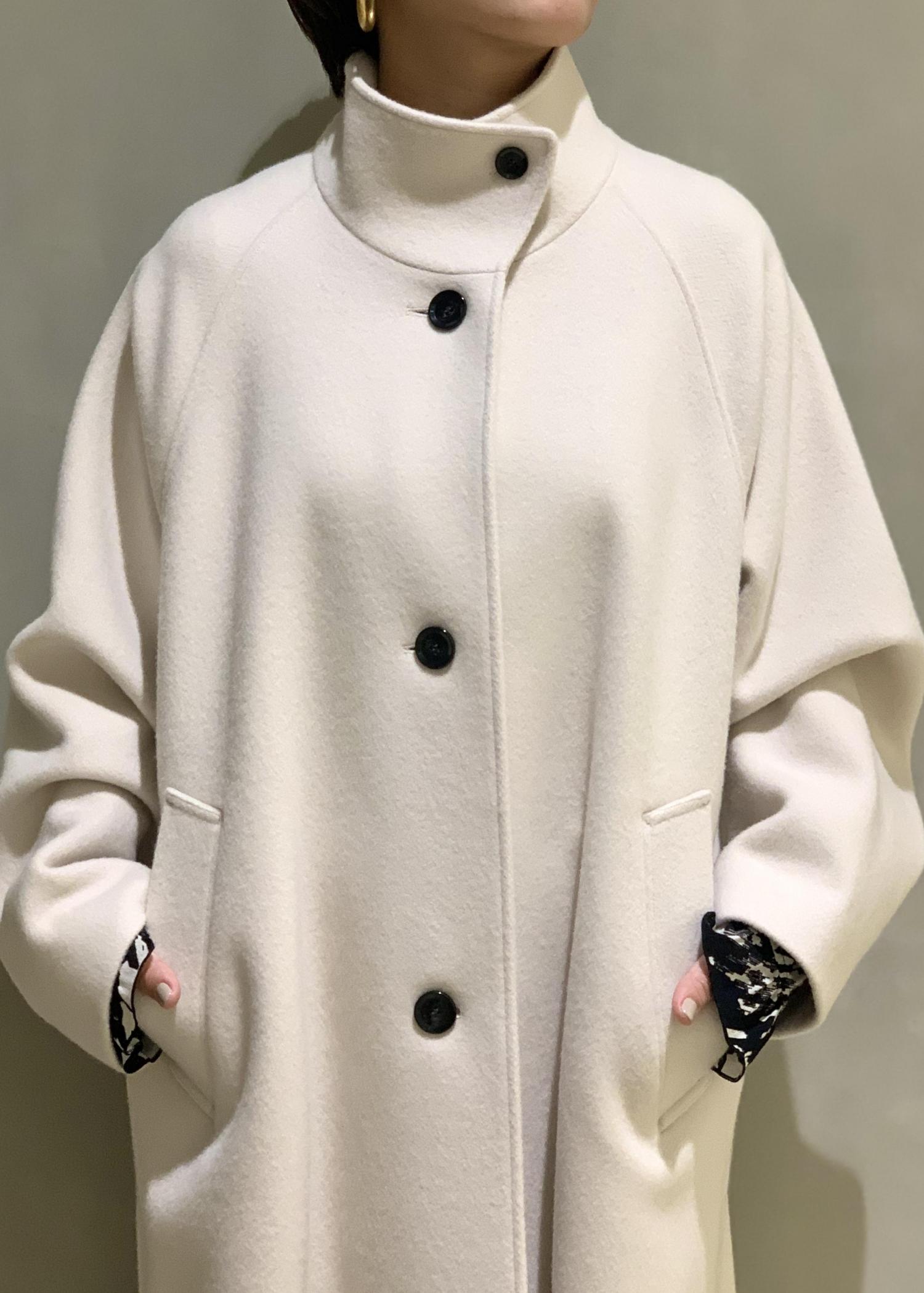 形がとても綺麗なスタンドカラーのコート。