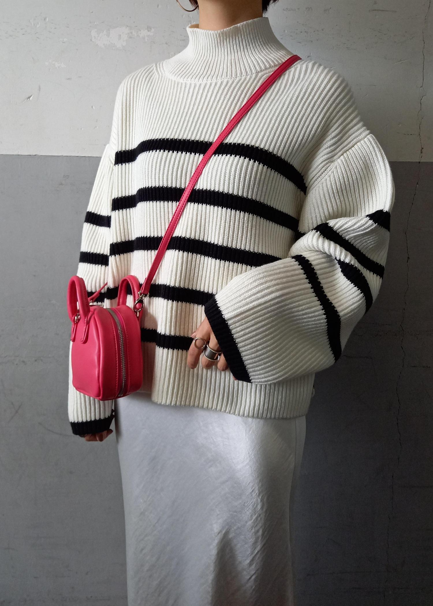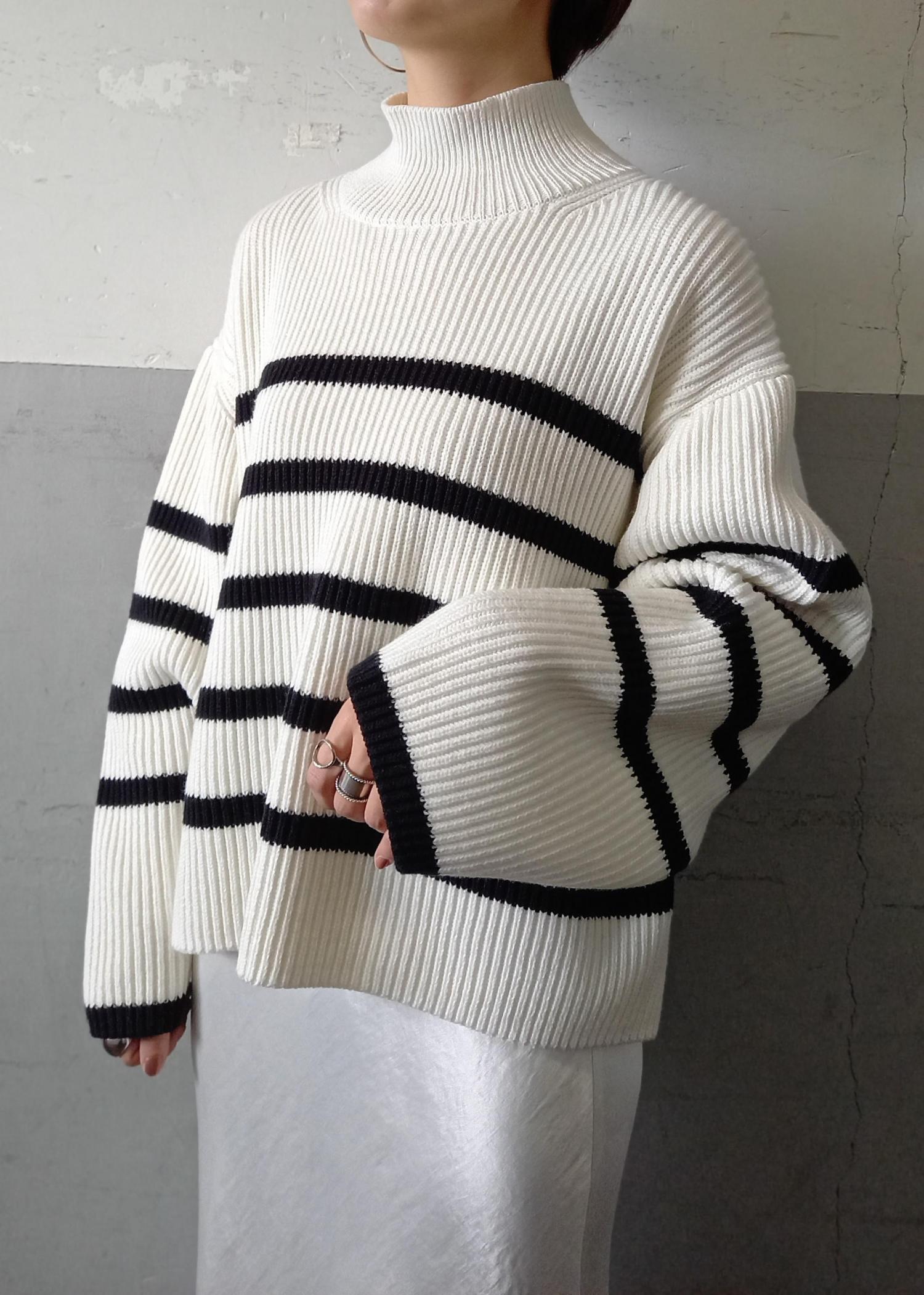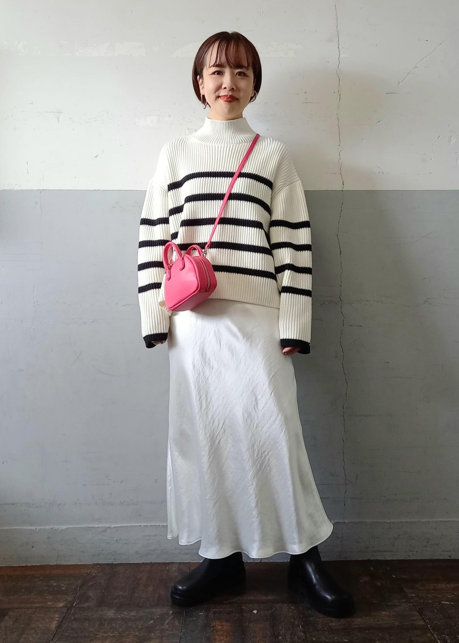 お顔回りにはボーダーがこないのでスッキリと、でも袖口にはラインを入れているのでキュッと締まった印象に仕上げてくれます。