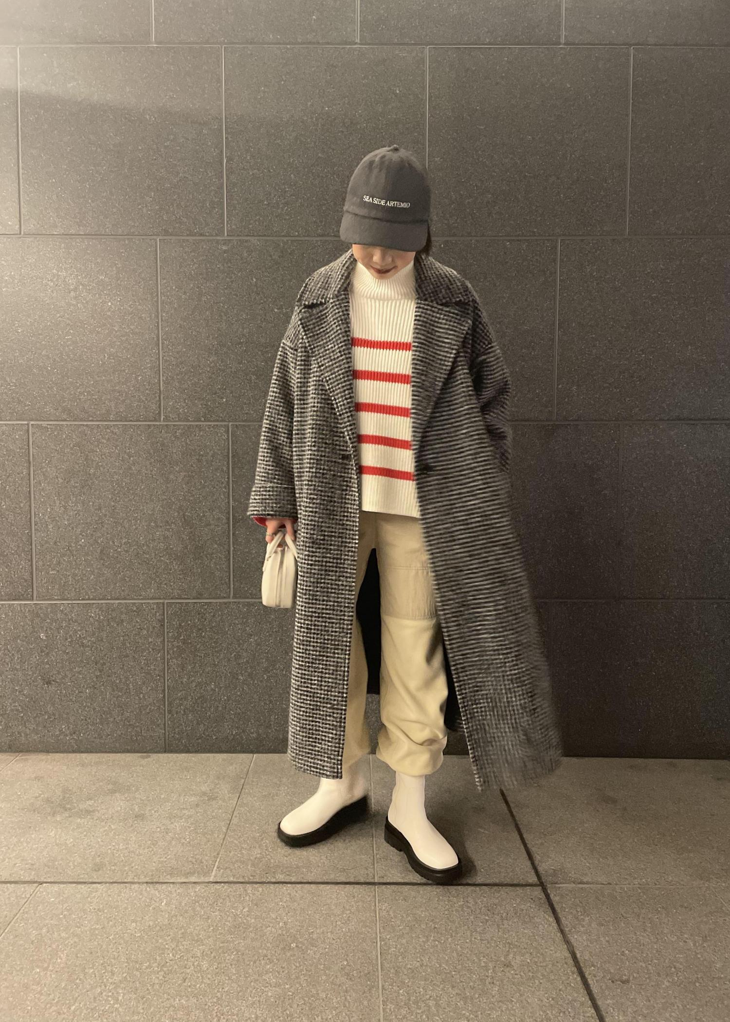 今回は今季トレンドのチェック柄のアウタースタイリングにしました。