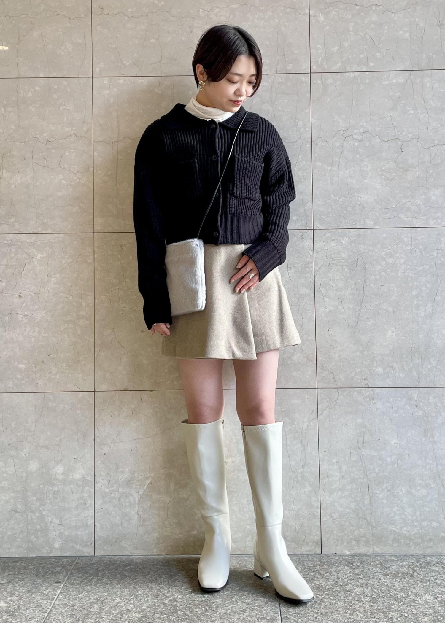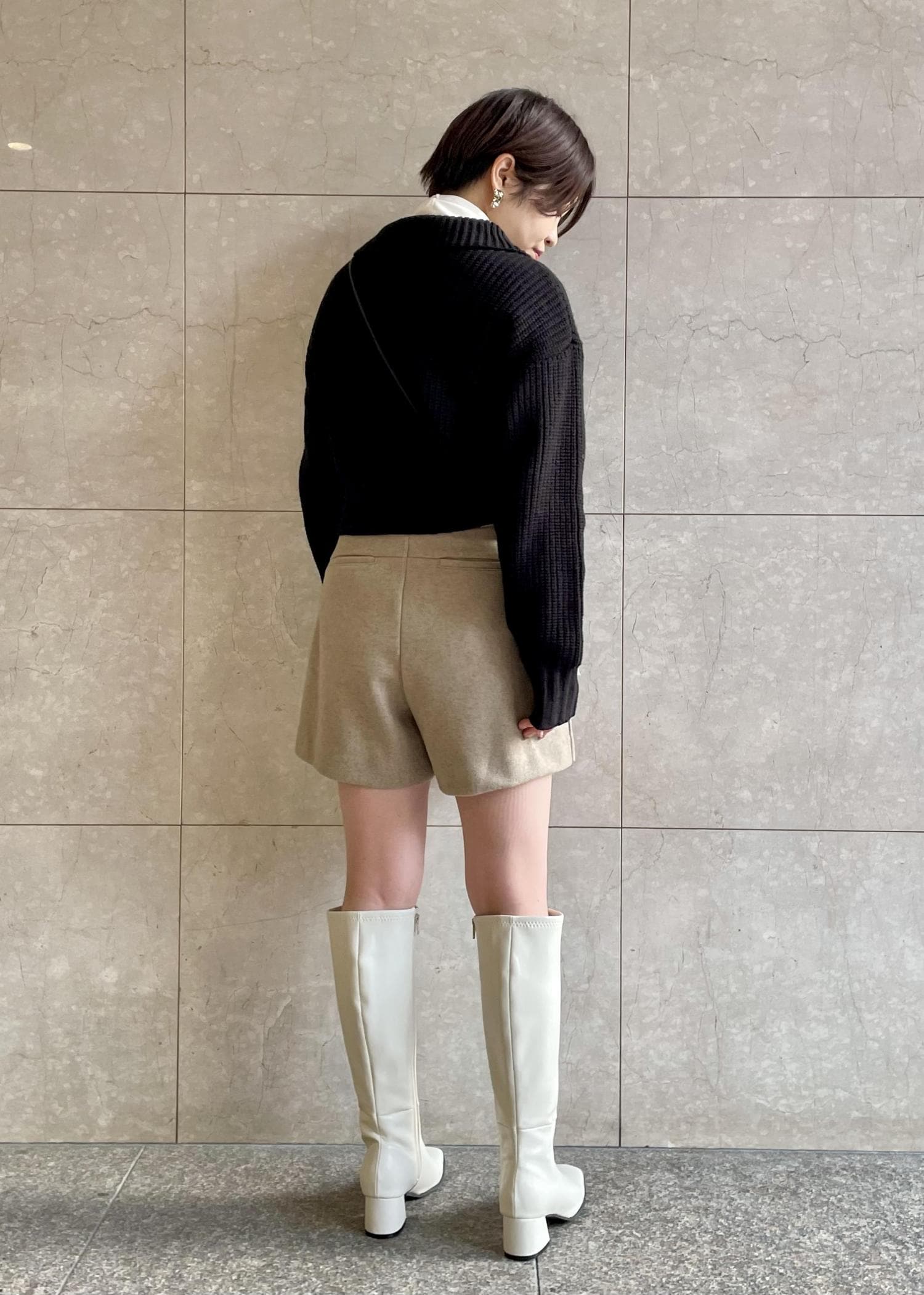 ショートパンツとロングブーツの合わせも
