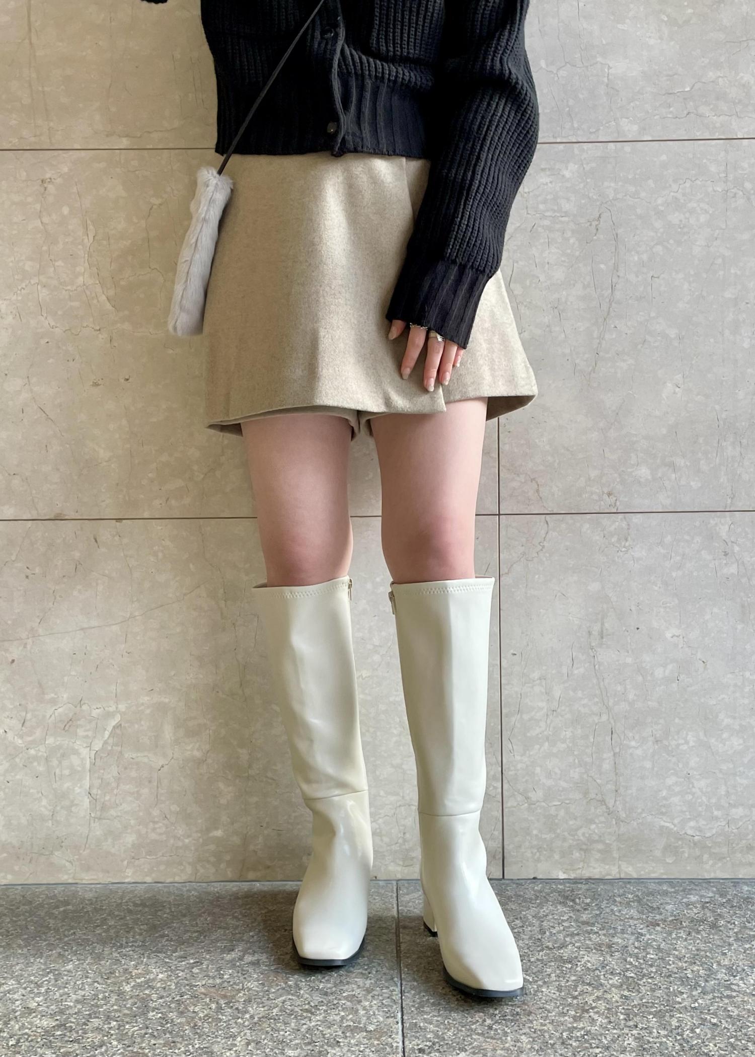 スクエアトゥストレッチロングブーツ
