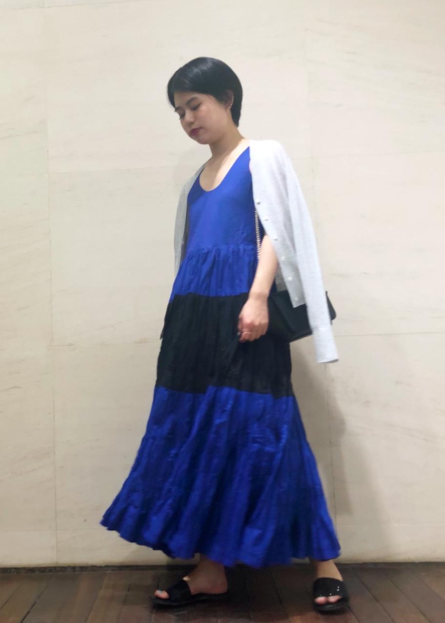 ブロッキングカラーが洗練された印象のMARIHAのワンピース。