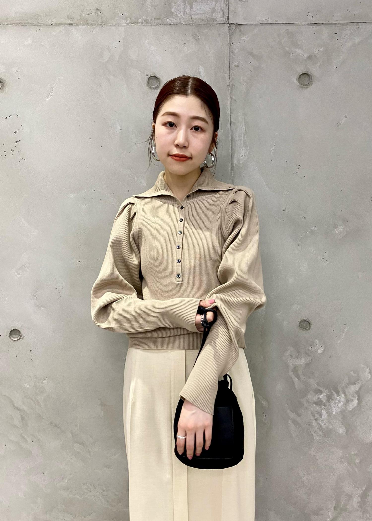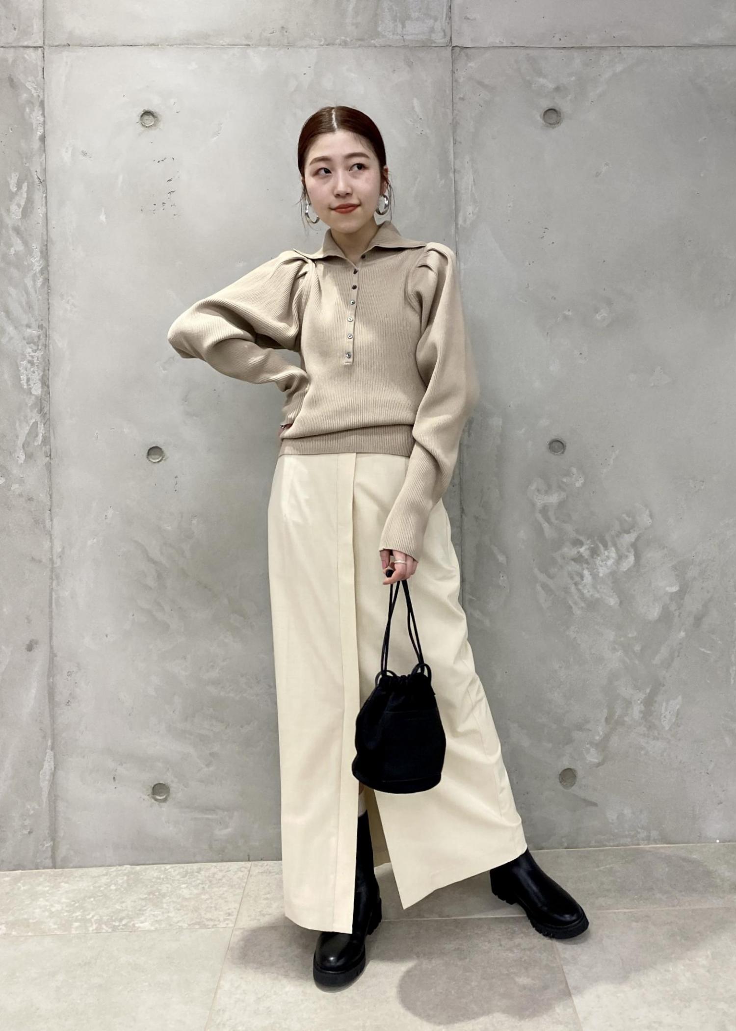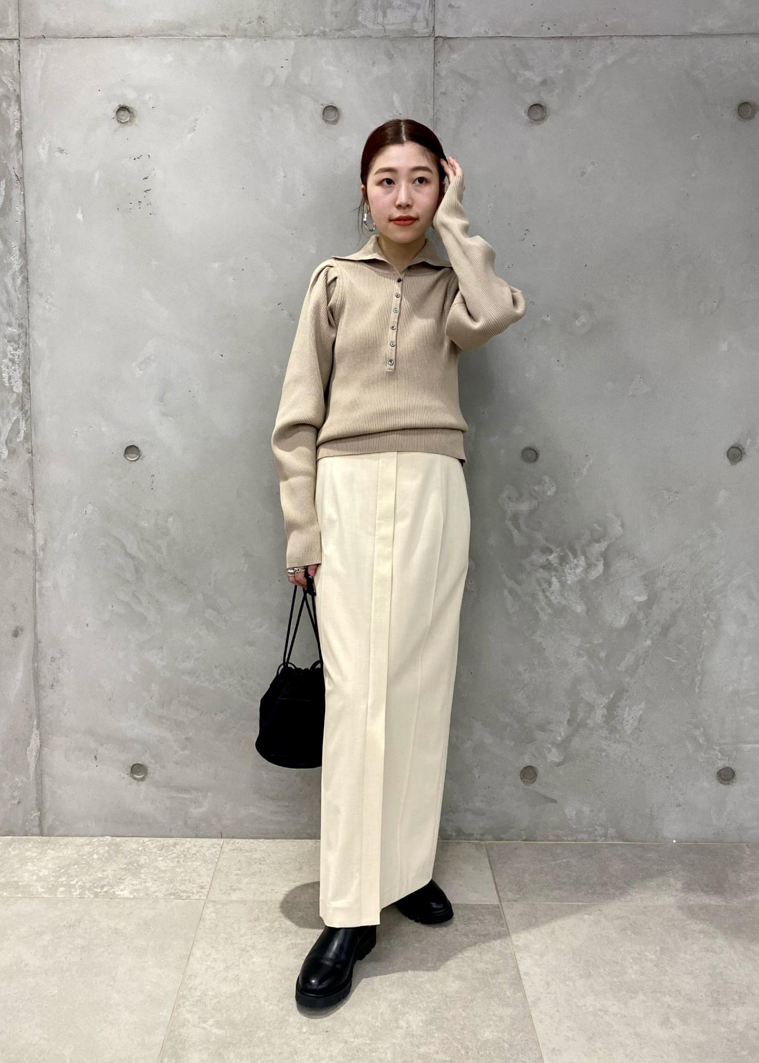 デザインが可愛いリブトップスとスリットが入った大人なシルエットのスカートでワントーンコーディネートにしてみました~