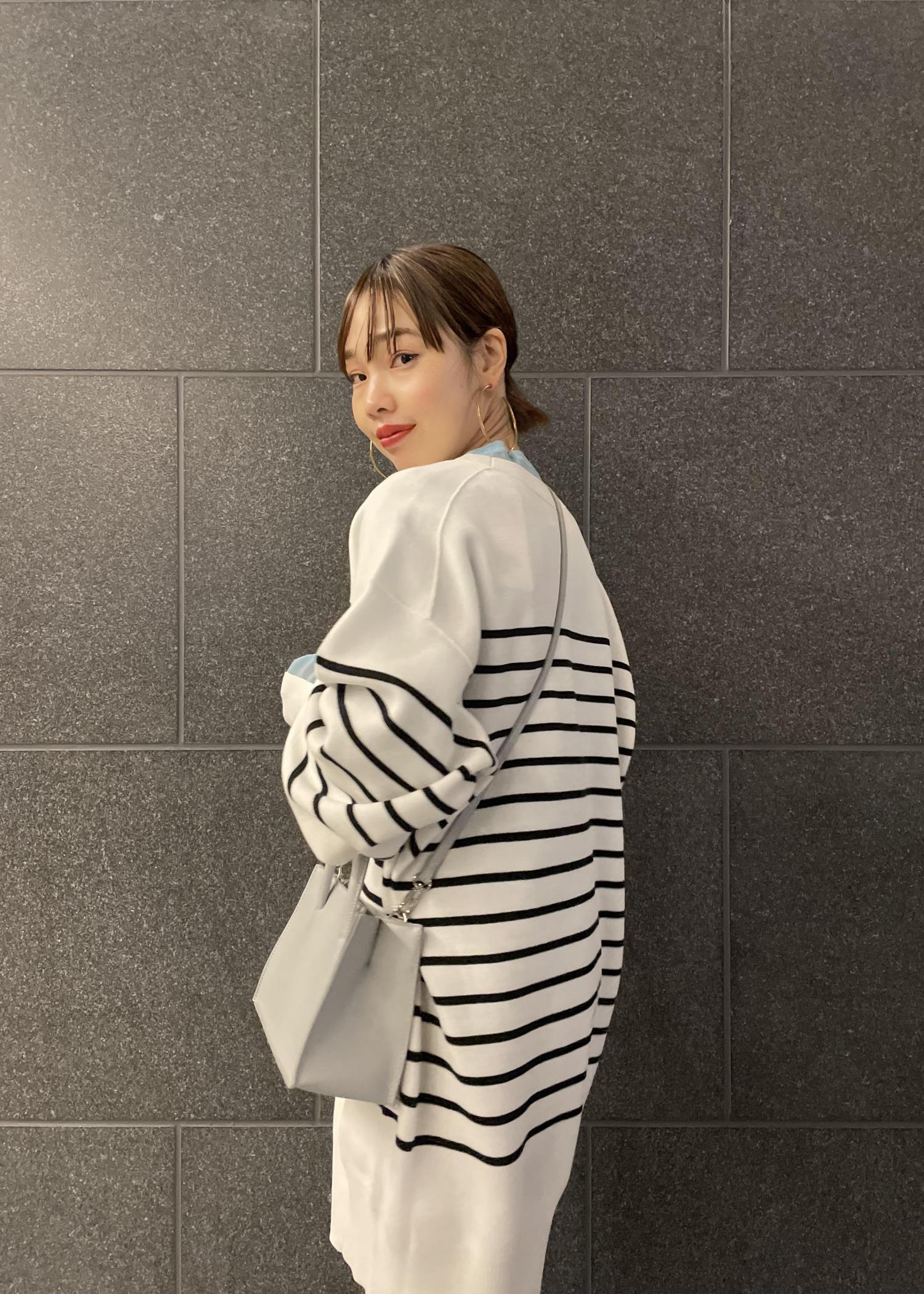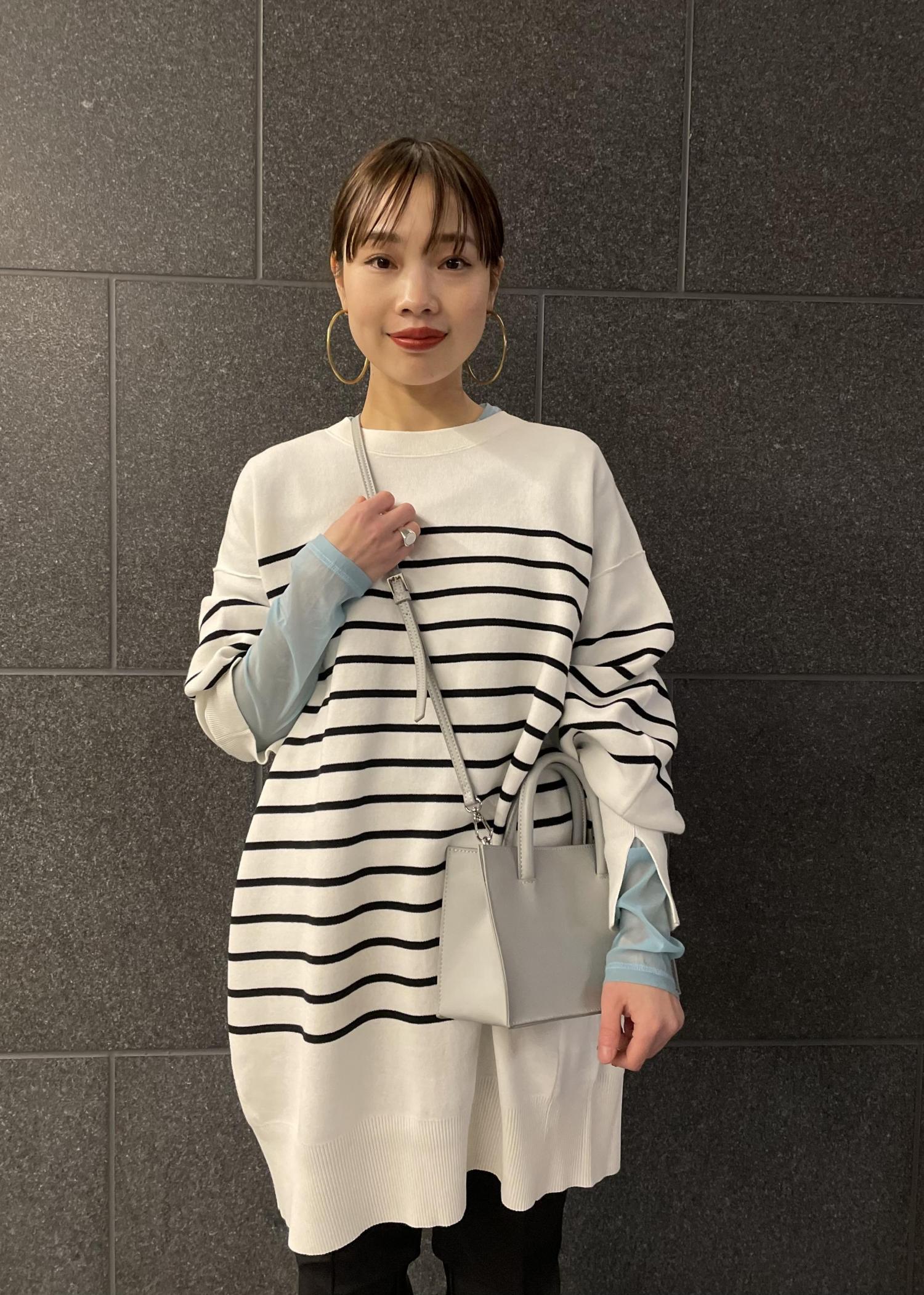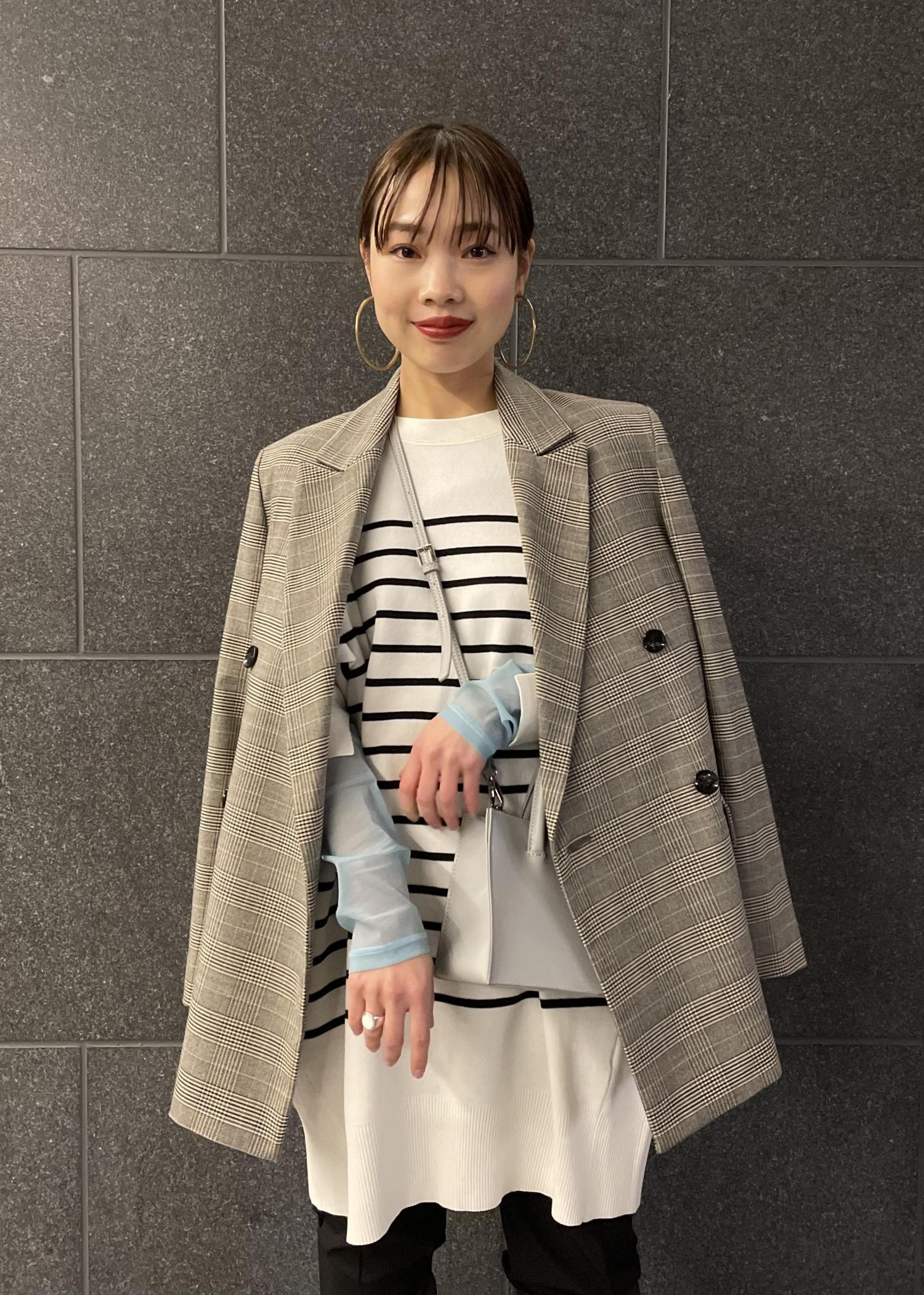 ブルーカラーのトップスをレイヤードしたのもポイントです。