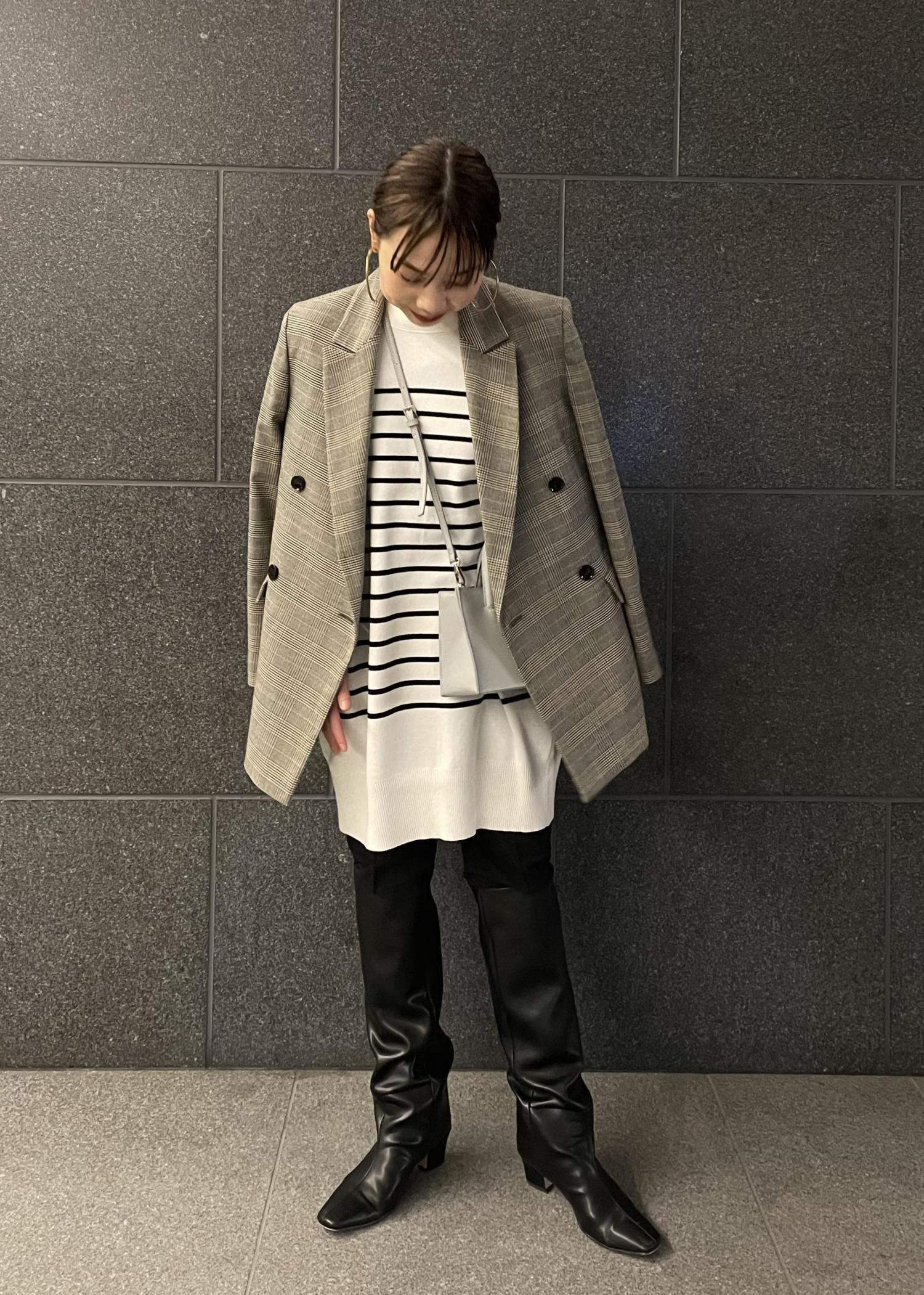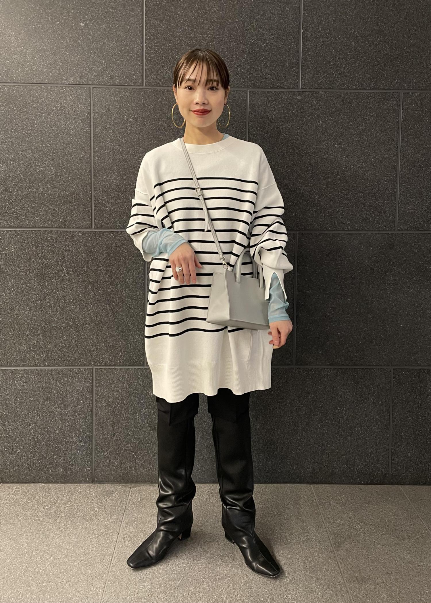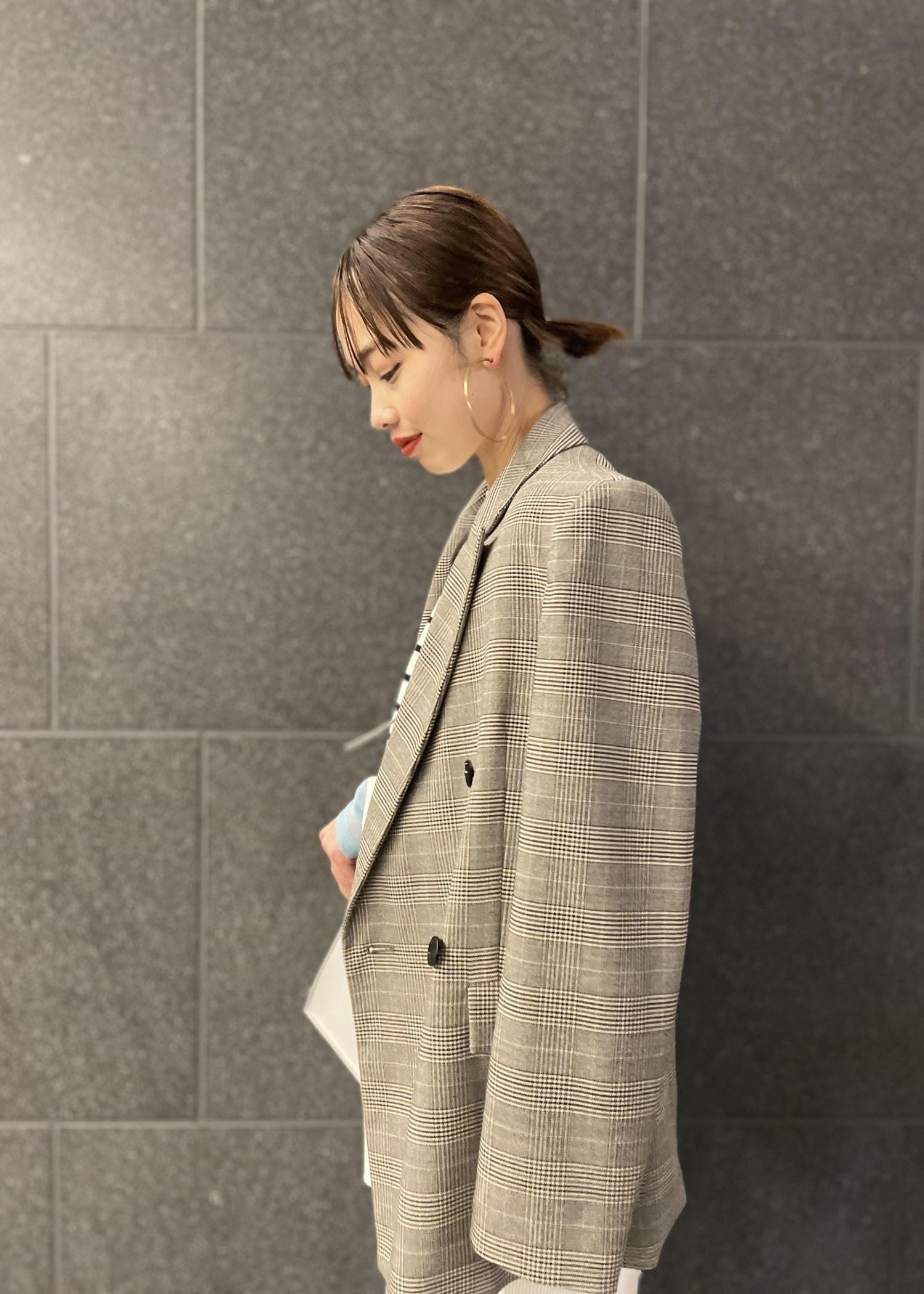 ブルーカラーのトップスをレイヤードしたのもポイントです。