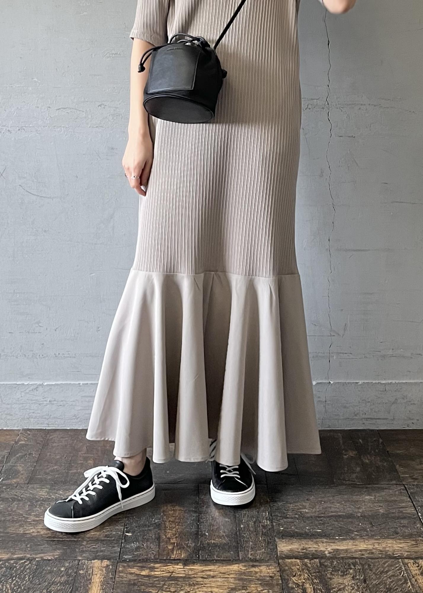 スニーカーとカジュアルな雰囲気で合わせていますが、ヒール&レザー小物を合わせると上品な印象でも着て頂けると思います。