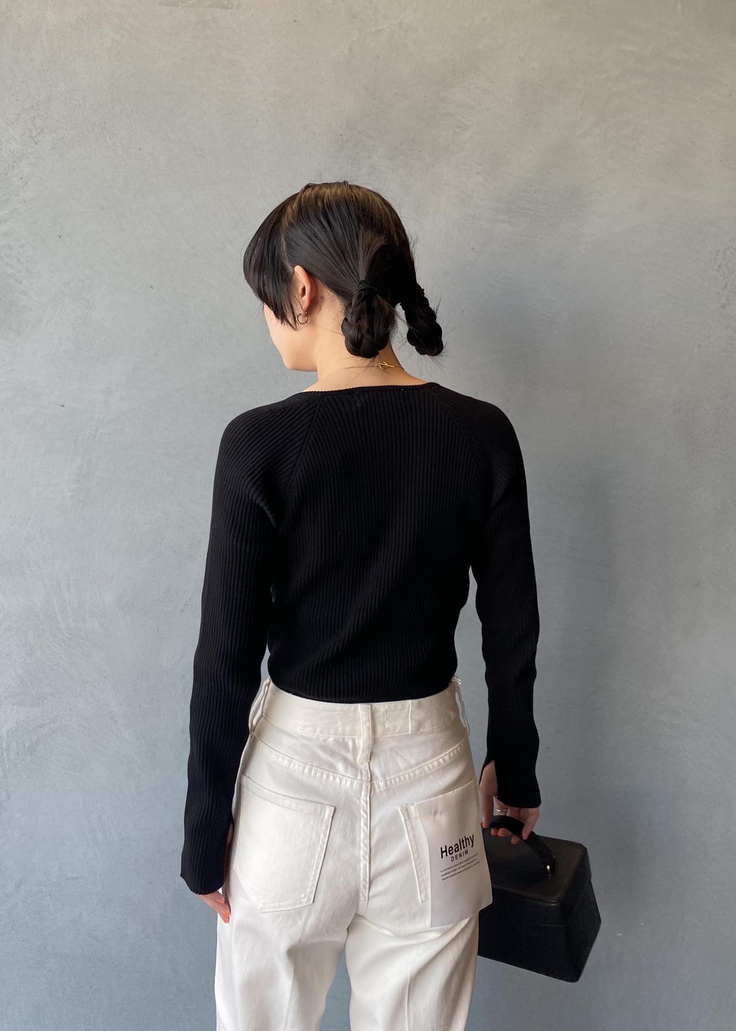 胸元はざっくりと開いていますが、独特なカッティングでいやらしく見えず、媚びない肌見せを叶えてくれます。