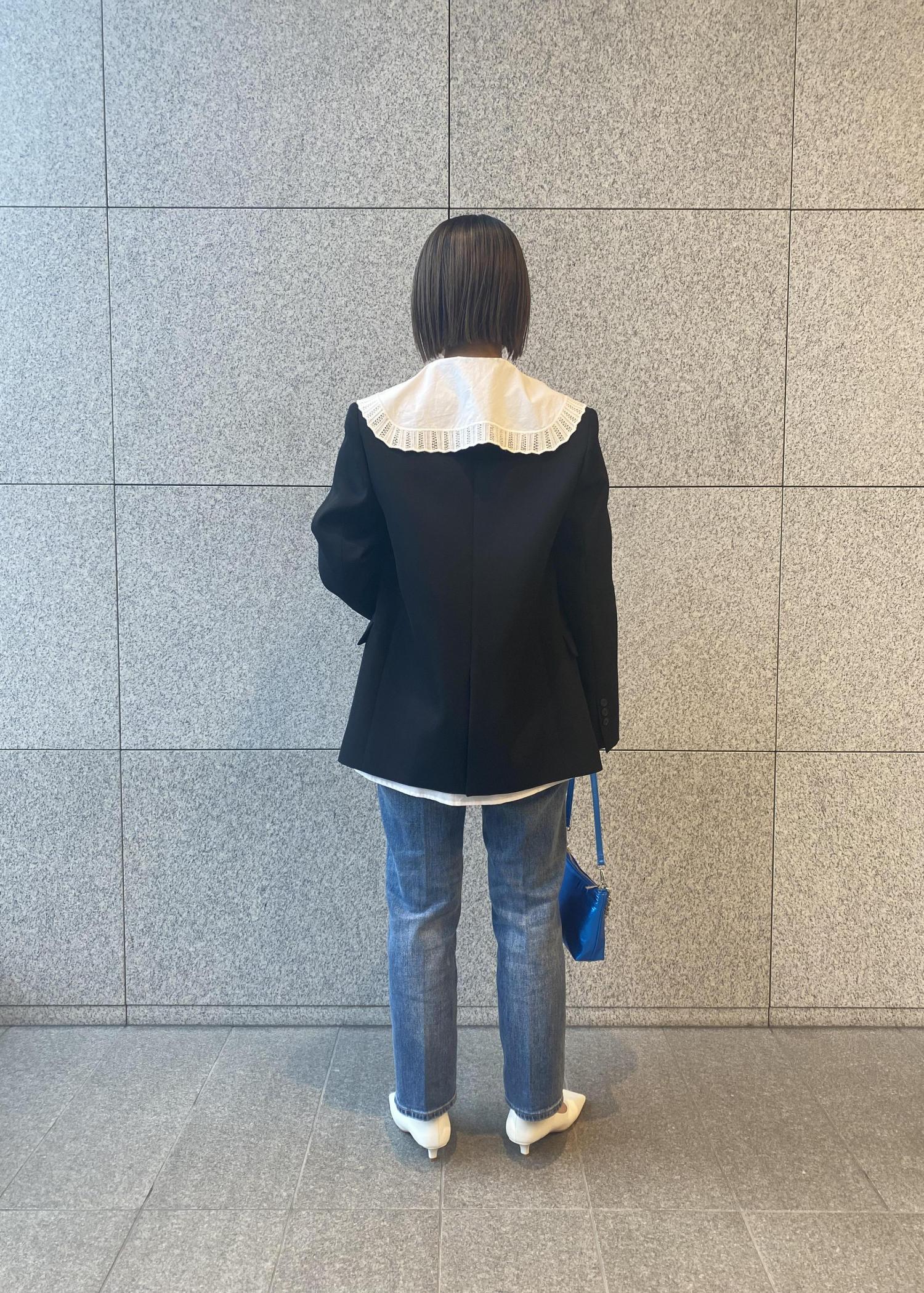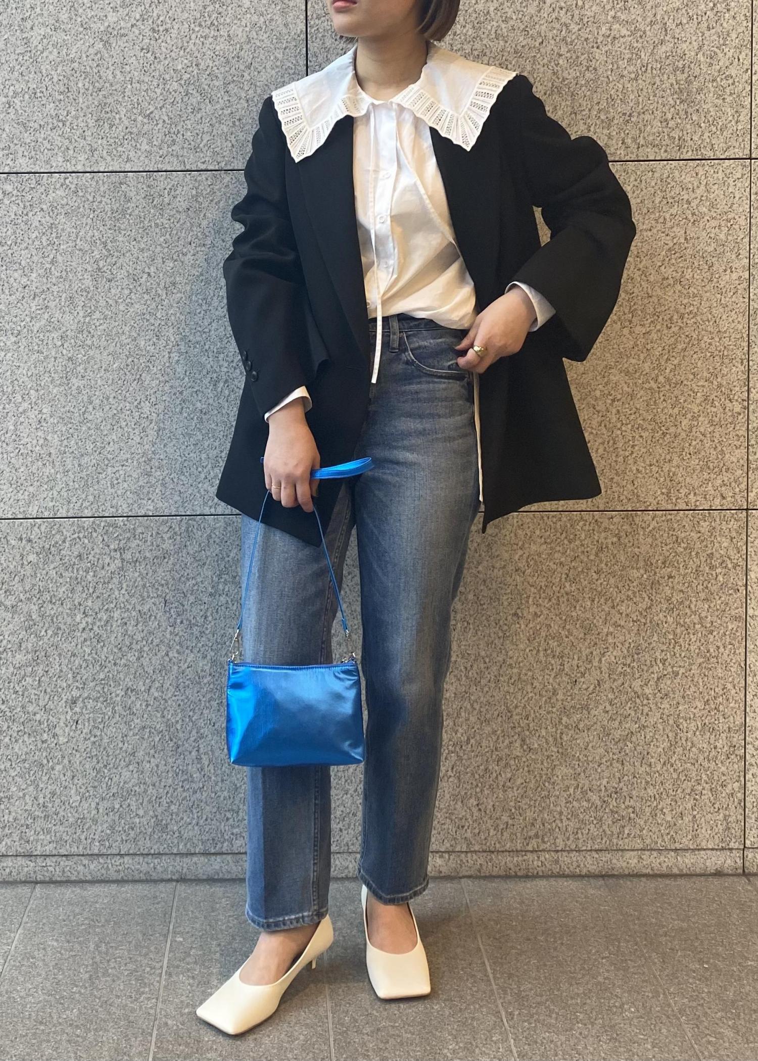 またブルーのデニムと合わせることでカジュアルダウンしてスタイリングを組むのも可愛いですね!