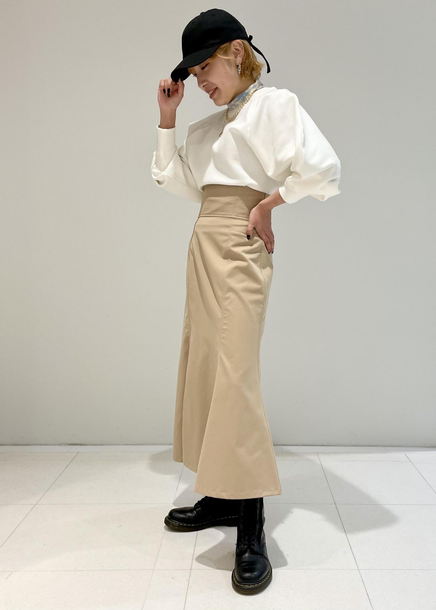 スカートスタイリングもあえてボーイッシュな小物で外したりするのが今の気分♪