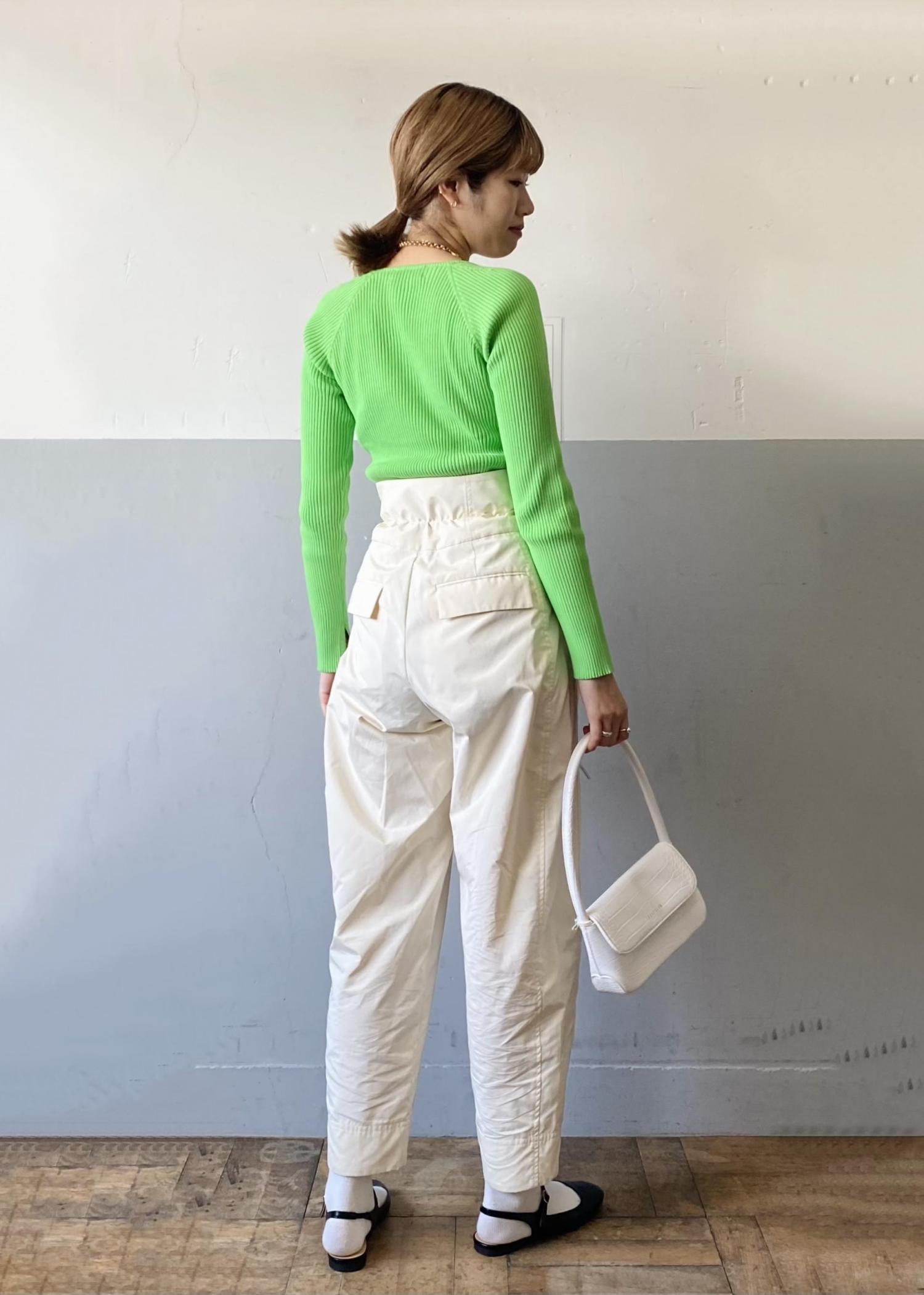 ハイウエストなので、トップスはインして着て頂くとスタイルアップ効果もあるのでオススメです!