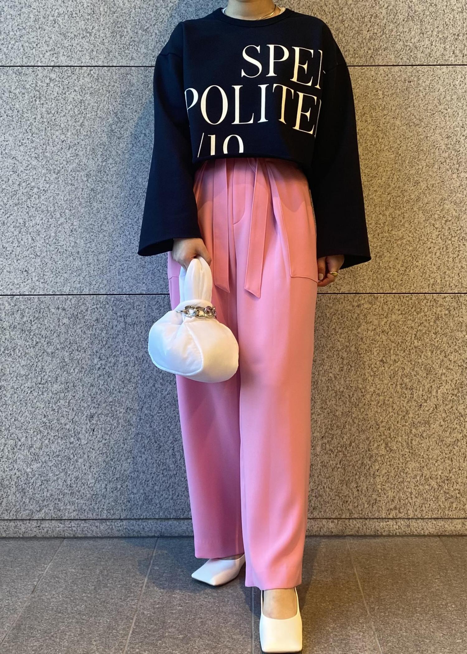 今回はコンパクトな着丈のスウェットと合わせましたが、オーバーサイズニットやストライプシャツと合わせても可愛いです!