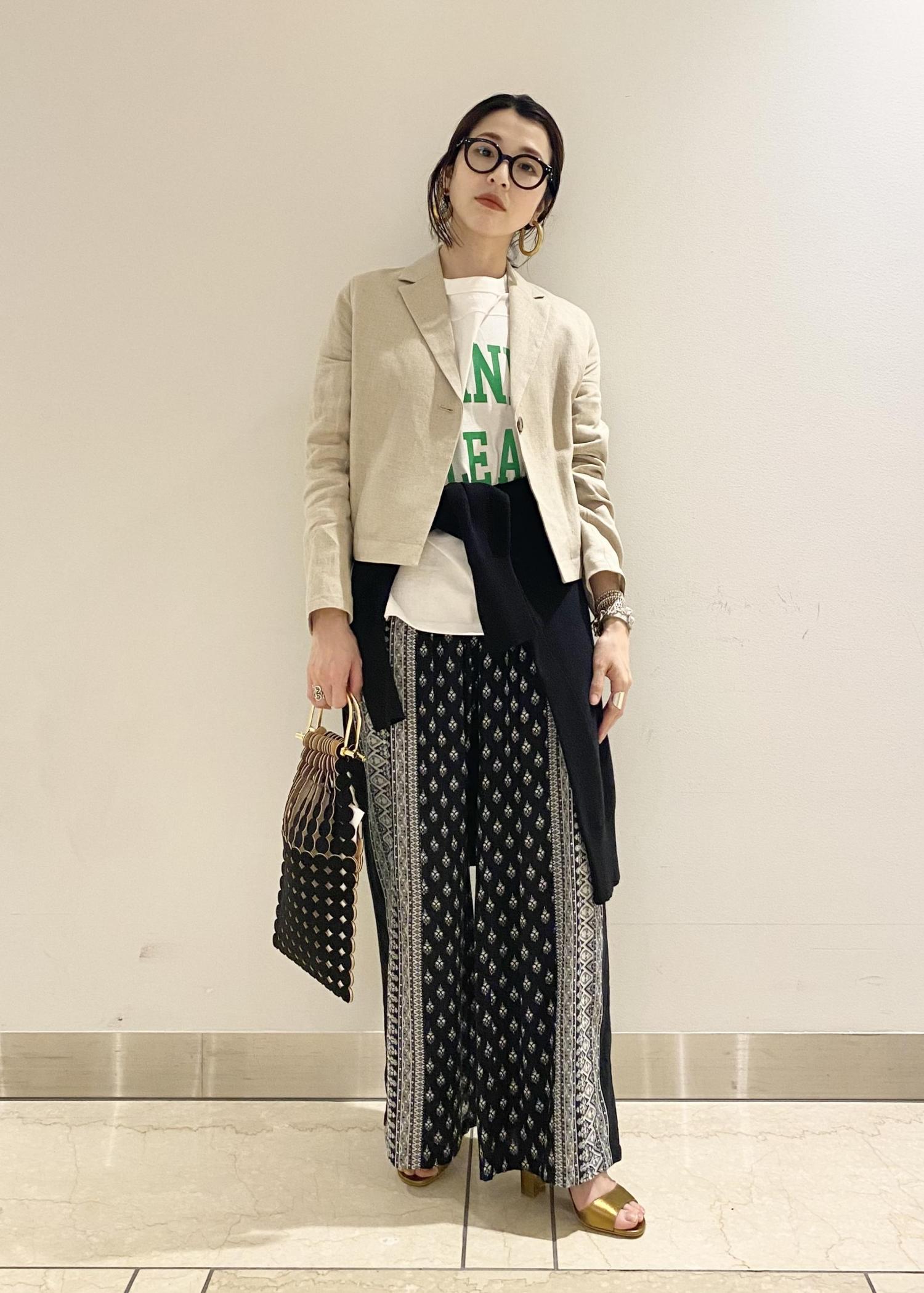 本日はトレンド感がたっぷりの麻キャンバスショートジャケットを使ったコーディネートのご紹介です。