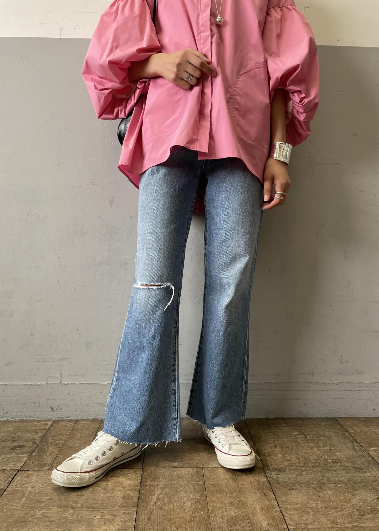 私は春らしいピンクをカジュアルに着たかったので、ROLLASデニム、converseと合わせてみました。