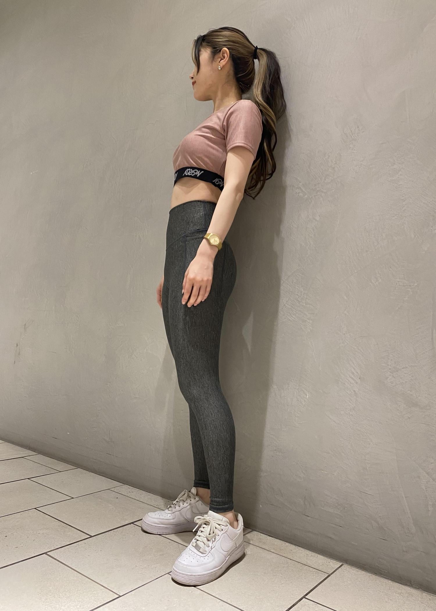 シンプルなタイツに合わせて、nergyロゴトップスで可愛さをさらに出すのがおすすめ!