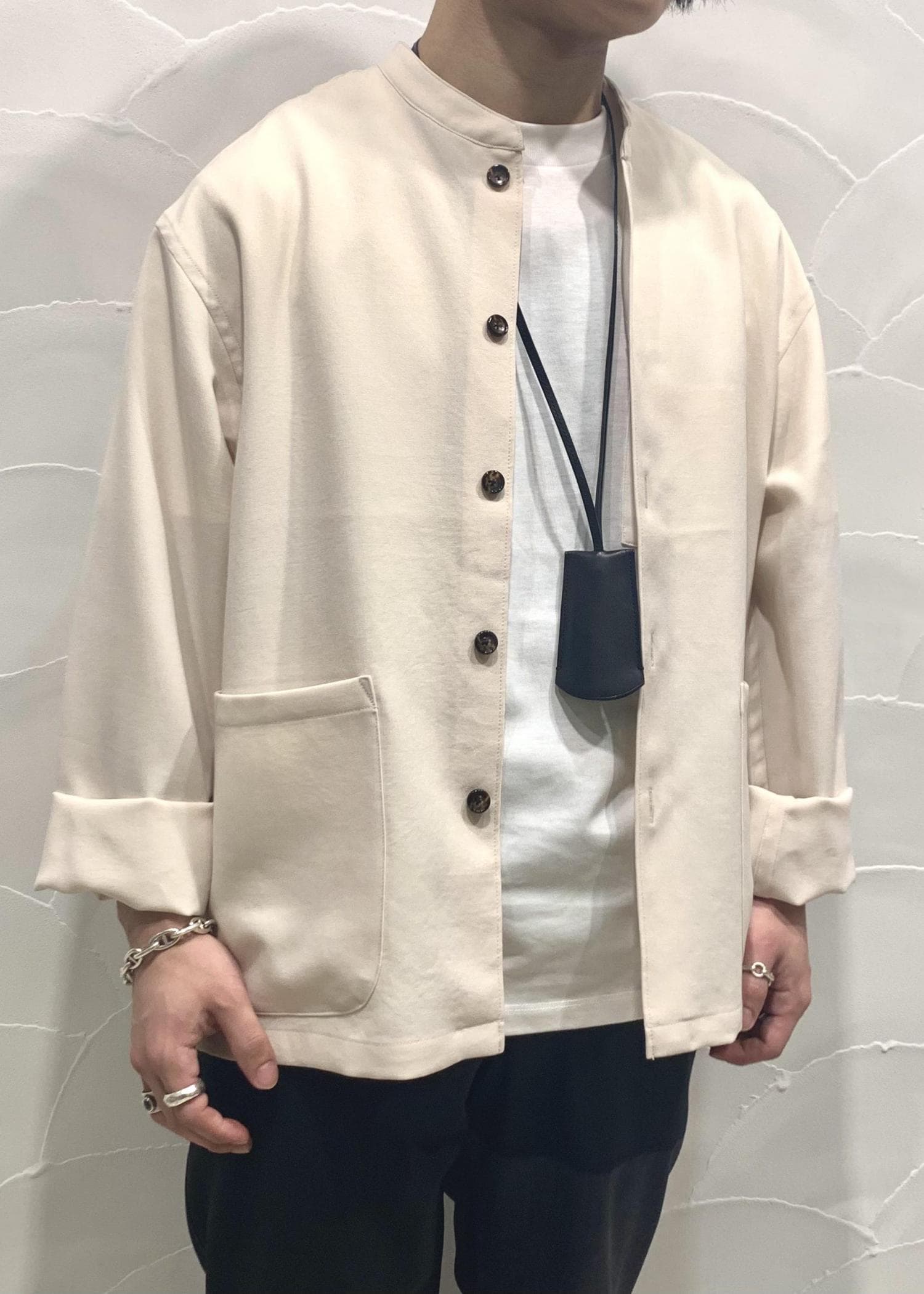 軽くサラサラとした素材なので、夏でも快適に羽織れちゃいます。白Tでカジュアルになりガチな夏のスタイリングにいかがでしょうか?