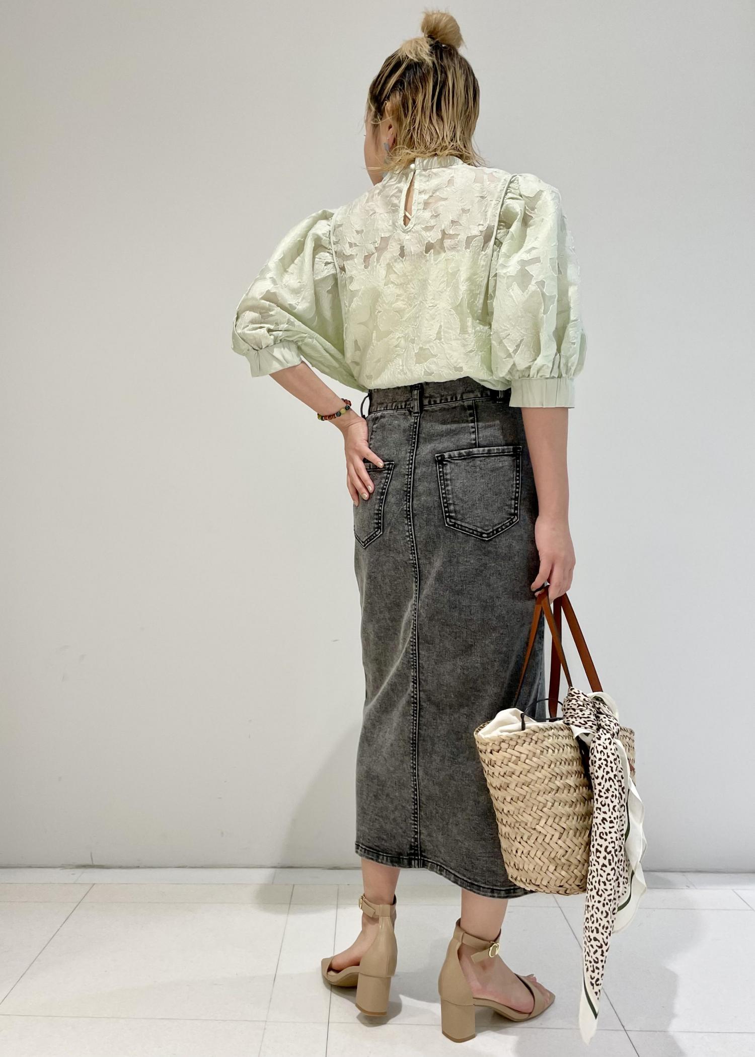 甘めレースブラウス×クラッシュデニムタイトスカート 女っぽさとカジュアルさをMIXさせたコーデ。 どっちにも転がり過ぎないのがお洒落な 夏の大人女子コーデです。 身長 155cm 靴 23.5cm(M) 骨格 ☆ウェーブ☆ パーソナルカラー ☆ブルベウィンター☆