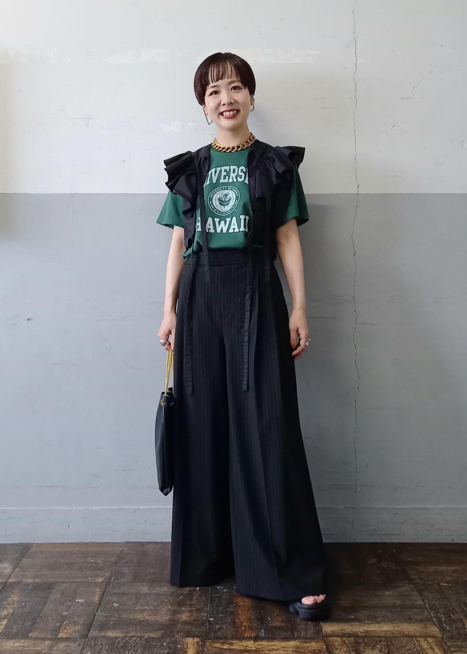 もともとノースリーブのカットソーとセットアイテムなのですが、今回は別々で着ています。