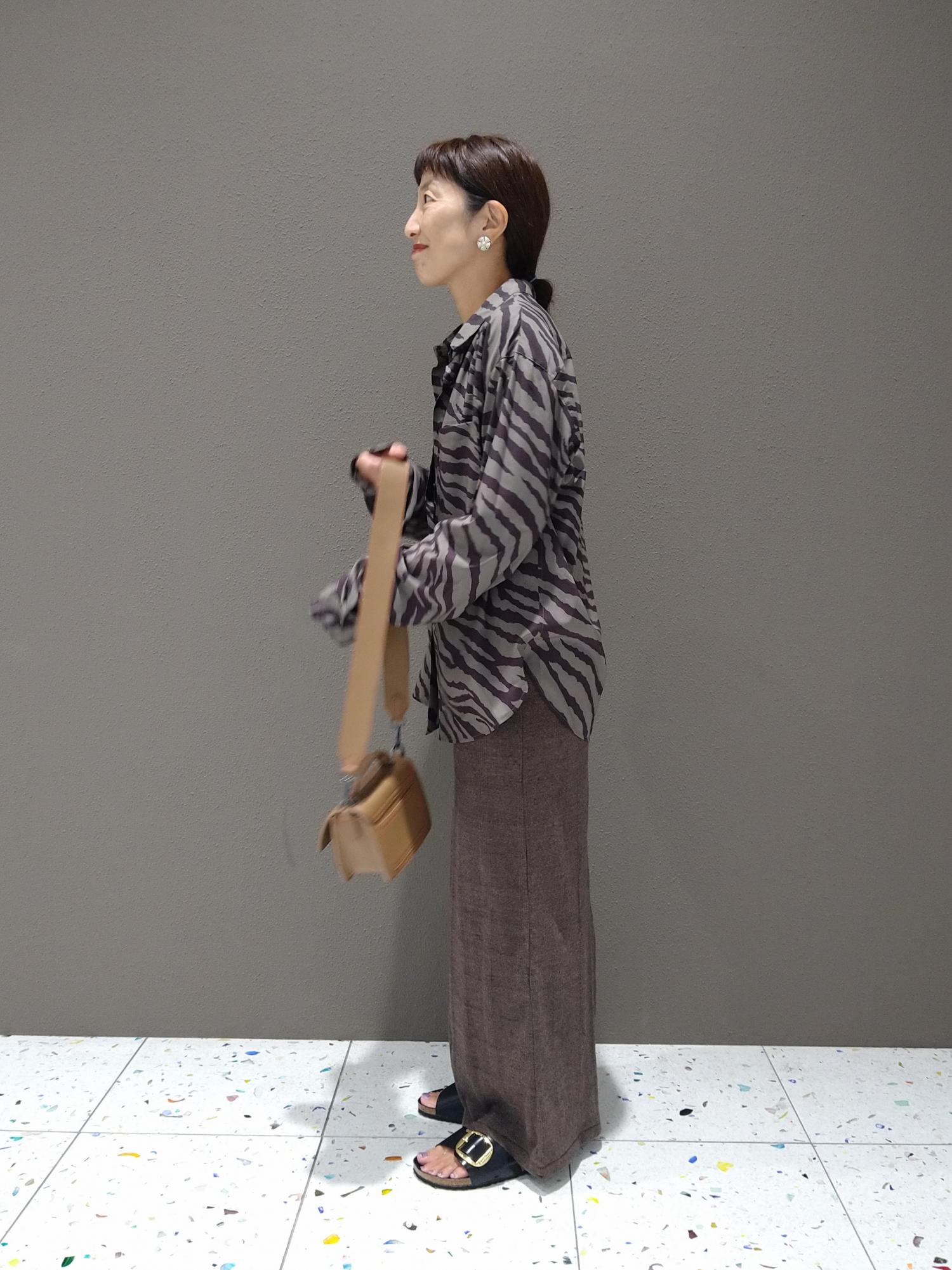 ハードな柄ですが落ち着いた色味が、着やすく合わせやすい。