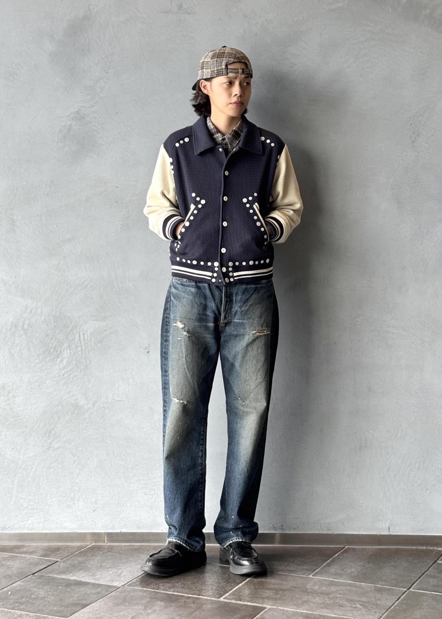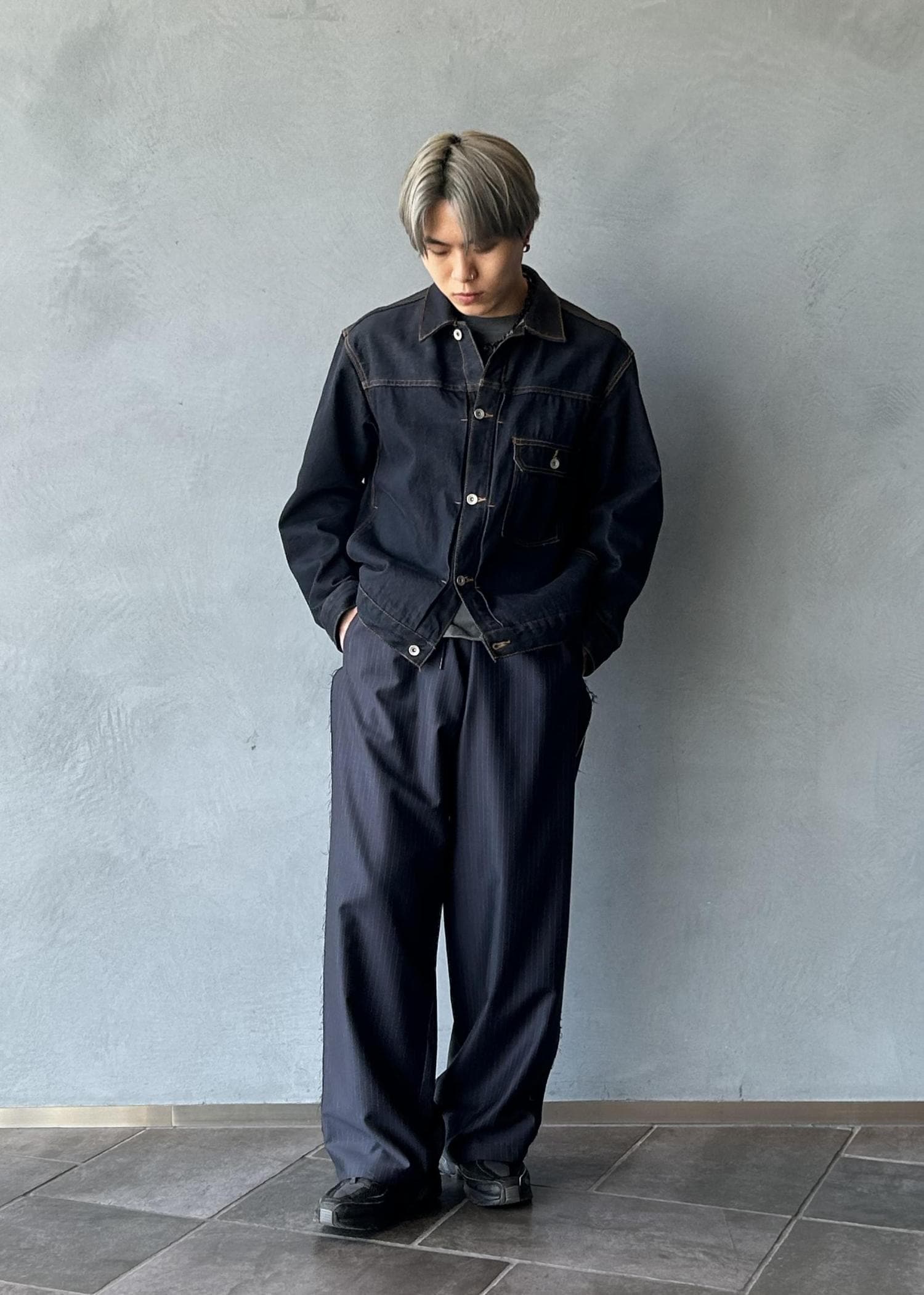 杢調のブルーグレーのような落ち着いた柔らかな色合いが生地感も相まって良い雰囲気です。