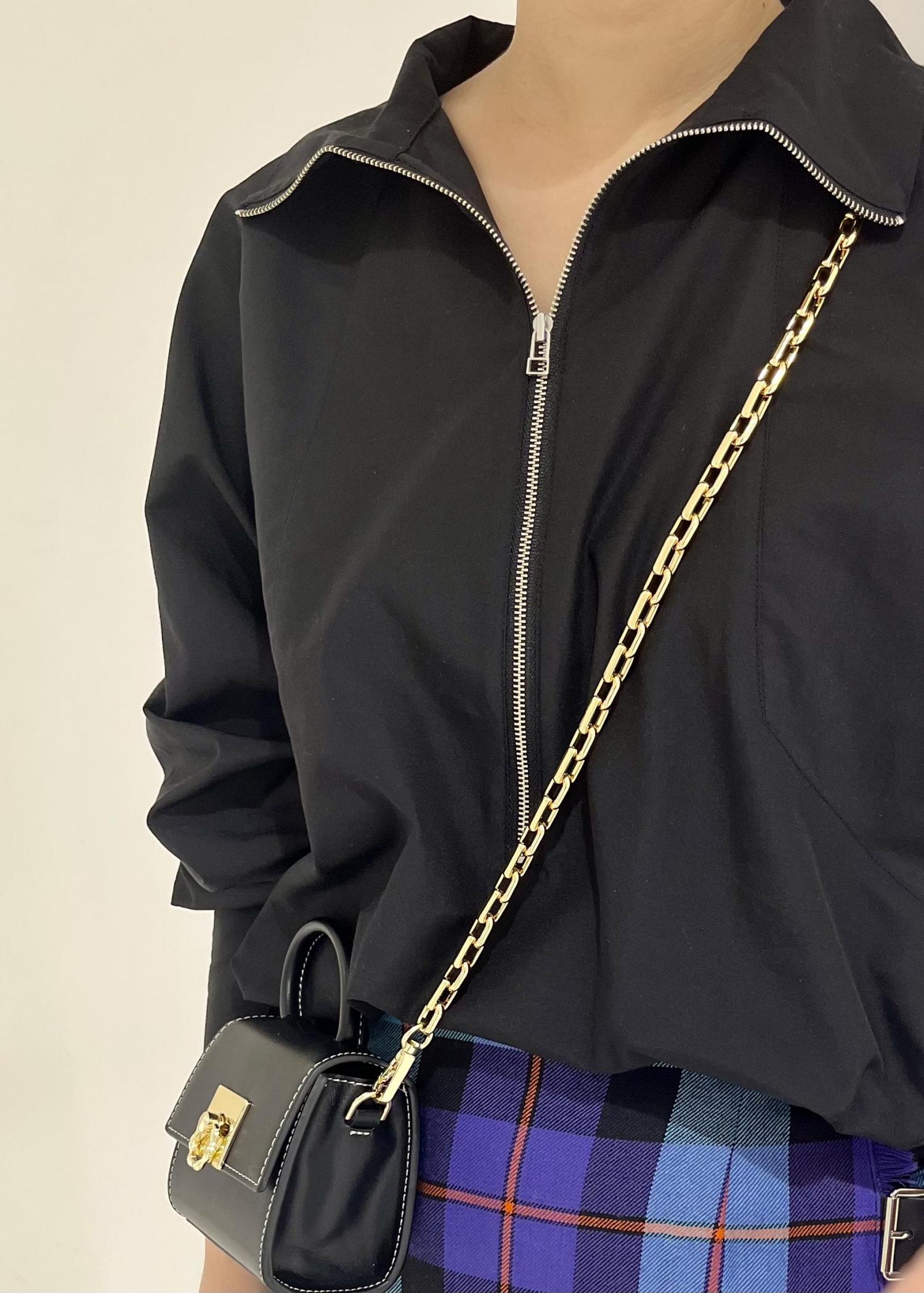 チェックのカラーが少し珍しいブルーを少しスポーティーなトップスで外してみました!