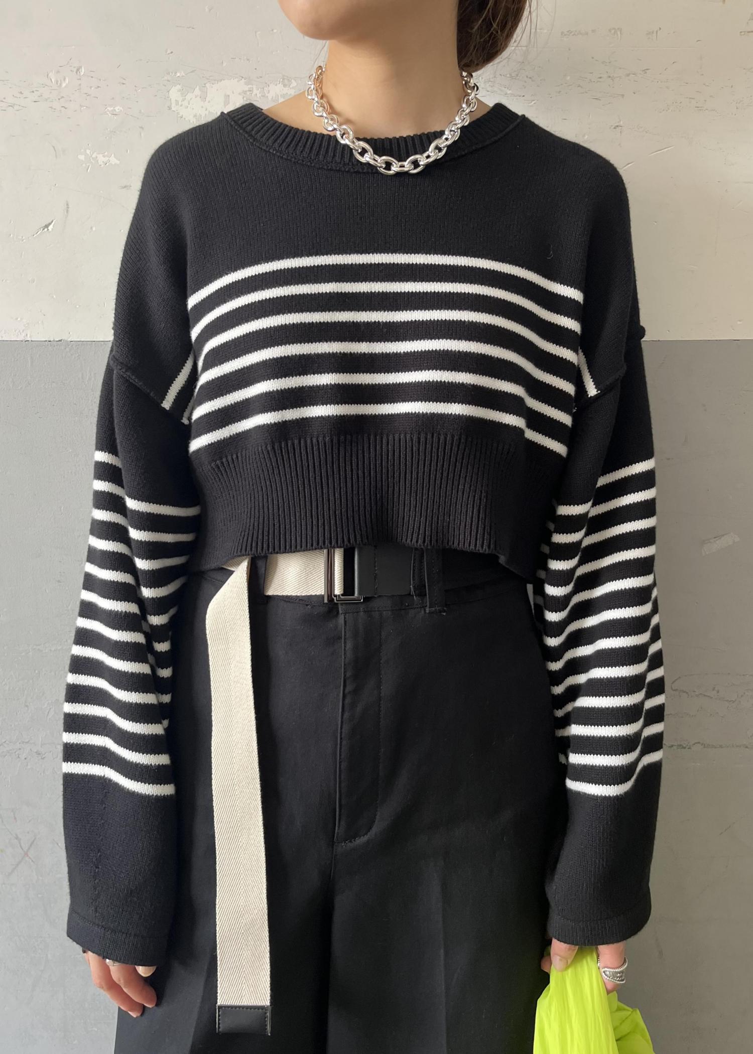 カジュアルになりがちなボーダーアイテムもモノトーンだと大人っぽく着て頂けるのでオススメです。