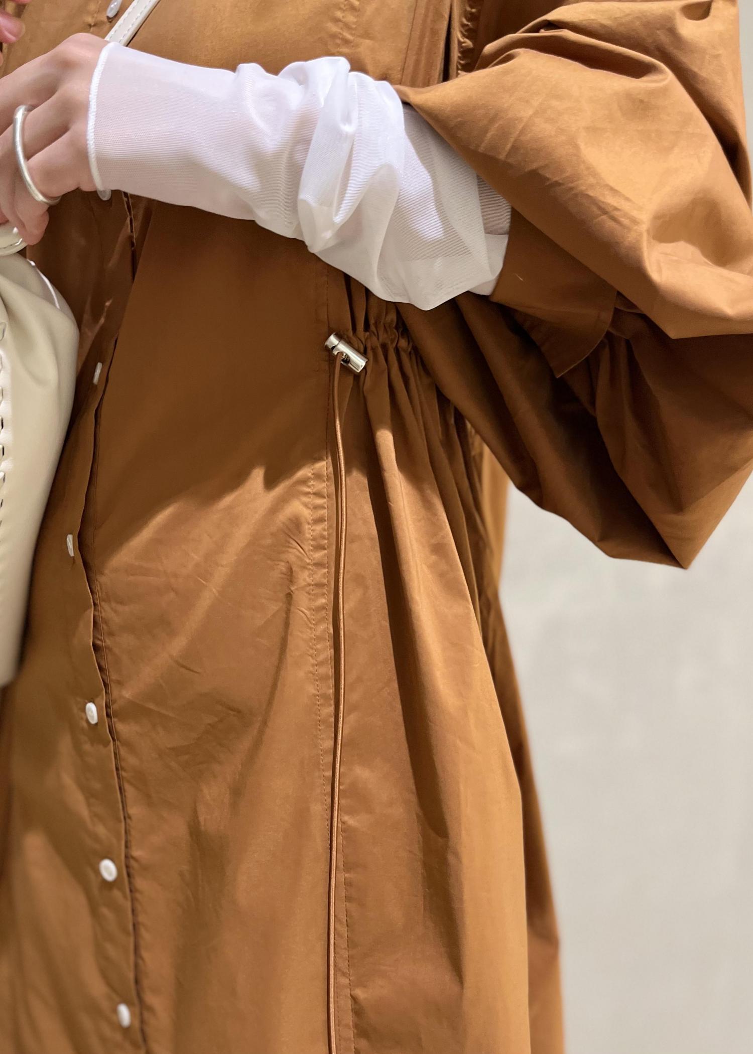 ウエスト部分はドロストコード仕様なので、絞るとメリハリのある女性らしいシルエットになります。
