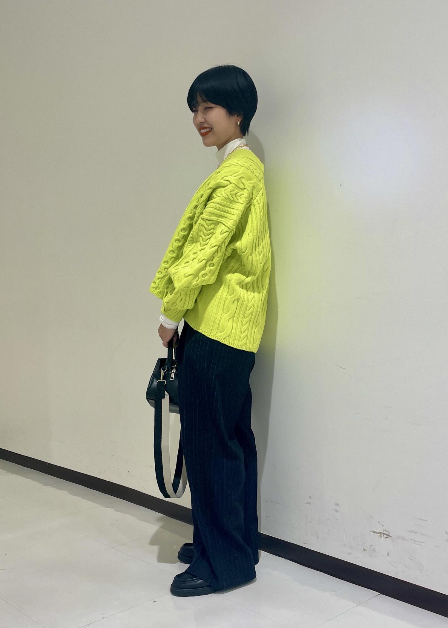 今回は、暗くなりがちな秋冬コーデに、ネオンイエローを取り入れたコーデをしてみました!