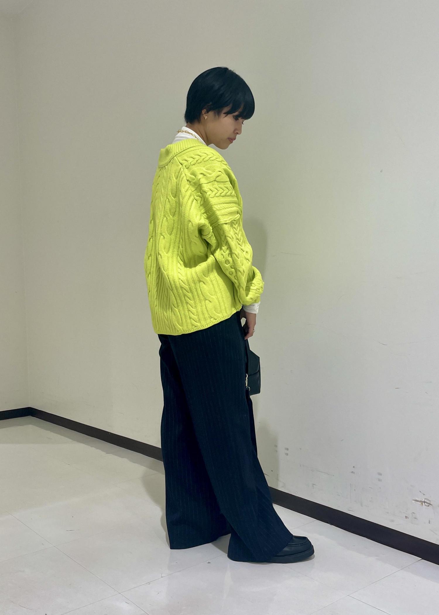 カーディガン単体も可愛いのですが、袖口がくしゅっとなっているカフチュールプルオーバーなどでレイヤードするのもおすすめ。この時期インナー1枚持っておくとかなり使えますよ♪