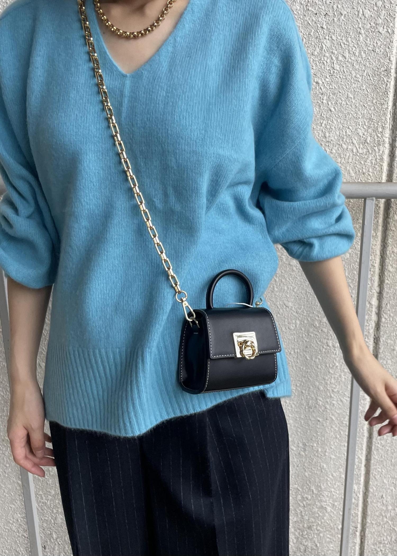 Vネックのこちらのファーニット、色に一目惚れしました!