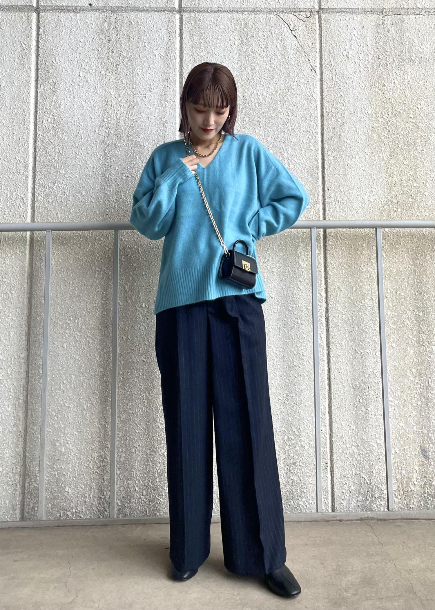 素材のふわふわ感が印象を柔らかくしてくれるので、パキッとしすぎず、普段あんまりカラーを着ない方でも挑戦しやすいです◎