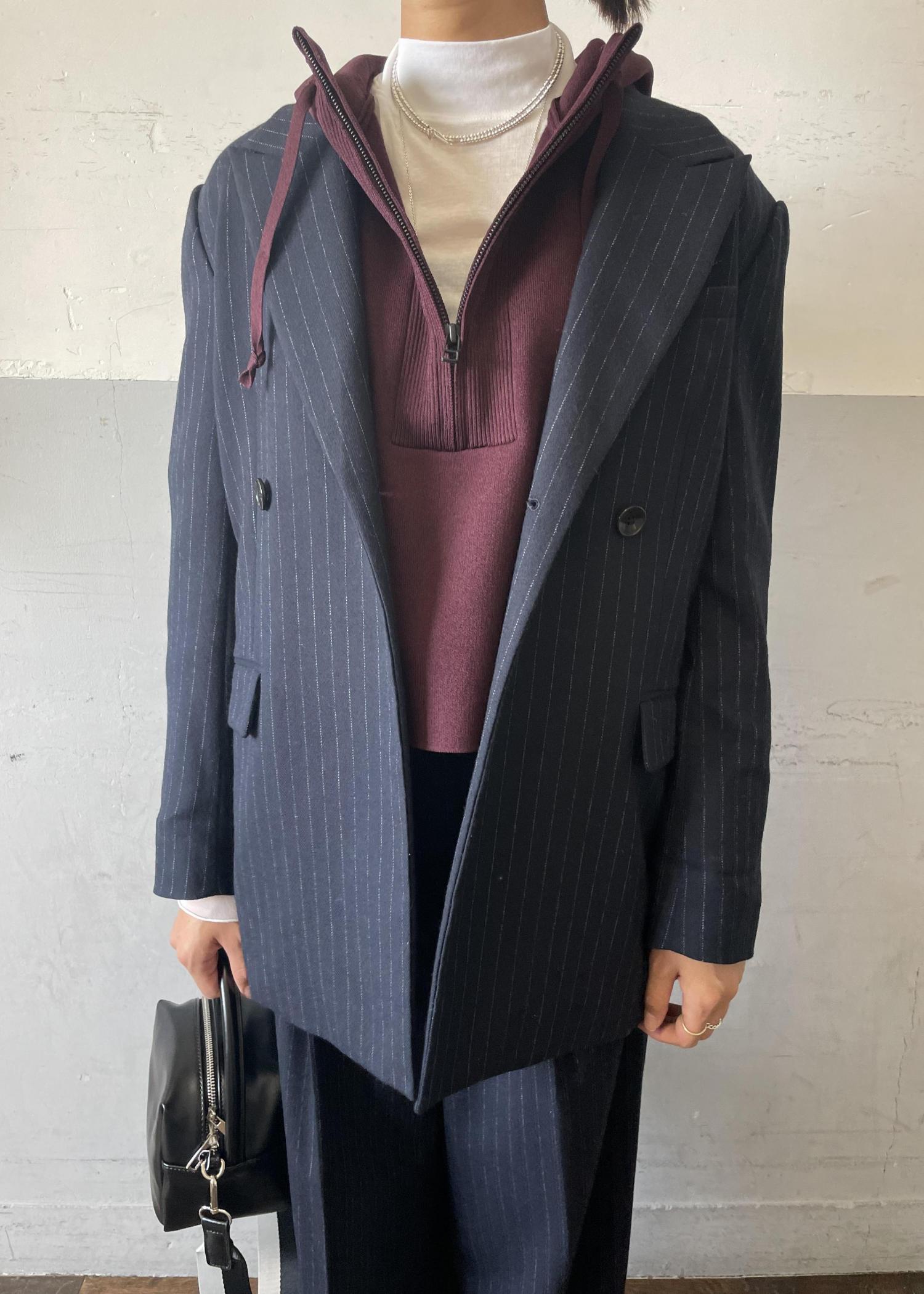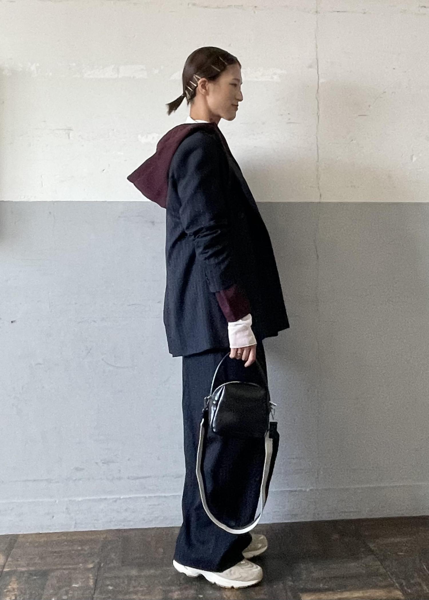 私は少しカジュアルにvenitのフードを出して着用してみました。