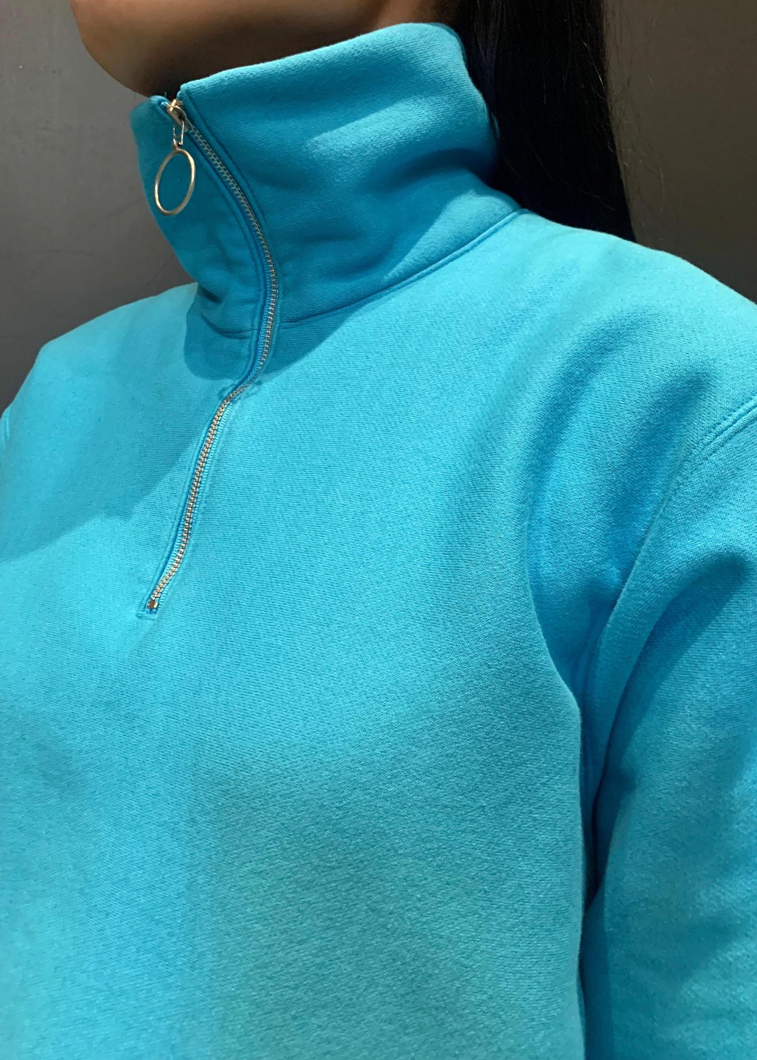 裏起毛でふかふかなので、スウェット一枚でもかなりあたたかいです…冬場は中に着込まなくても使えると思います!レイヤードで着る時は、ハーフジップを下げてインナーをチラ見せで着ても可愛いですね。(ロゴTとかタートルネックを合わせても◎)