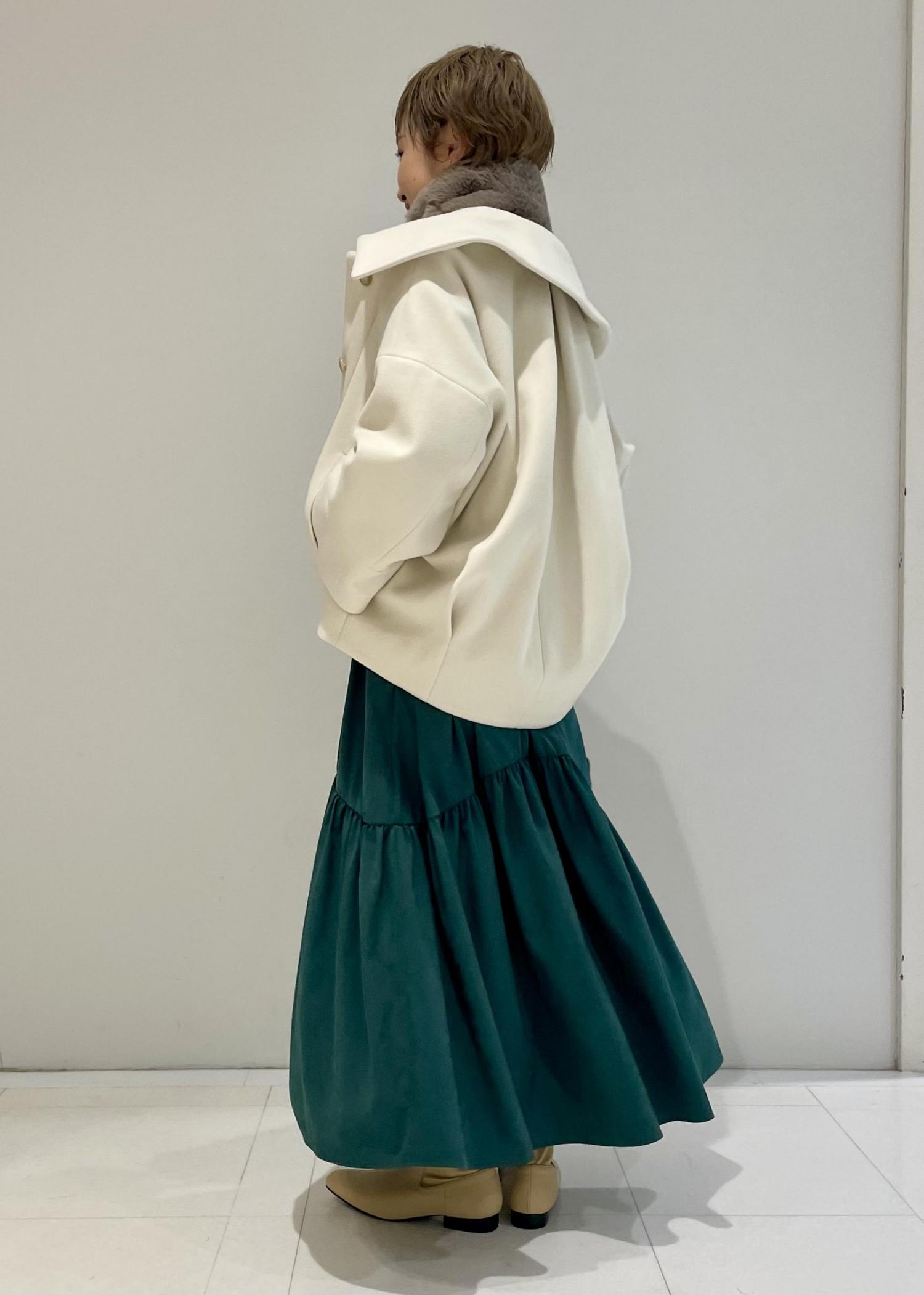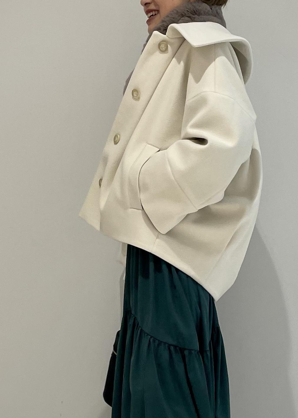 ふんわり雪を思わせるようなフェミニンな装いに。