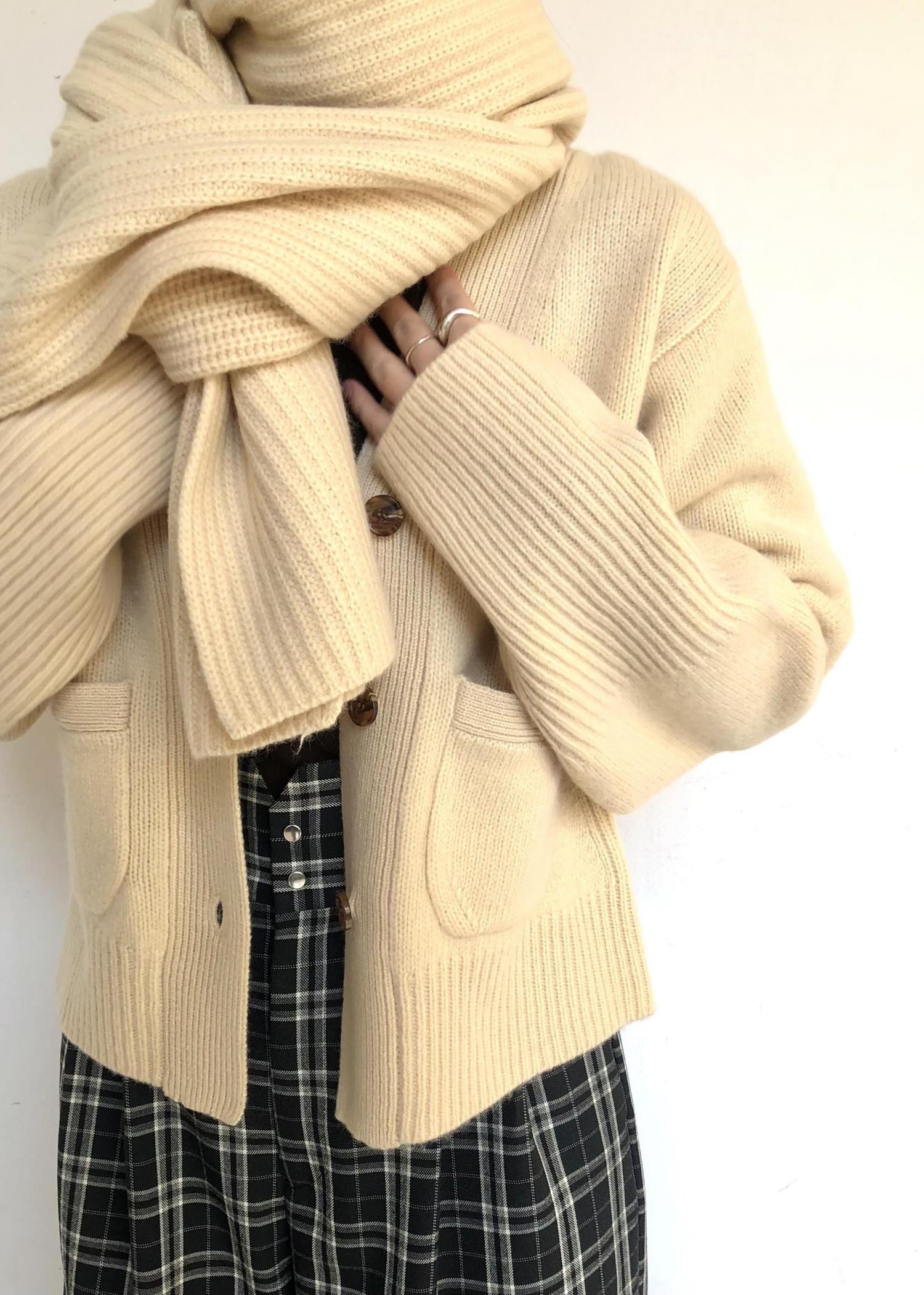 絶妙なカラーのクリーム色はウォーム感もあり、一気に女性らしく柔らかい雰囲気にしてくれます。