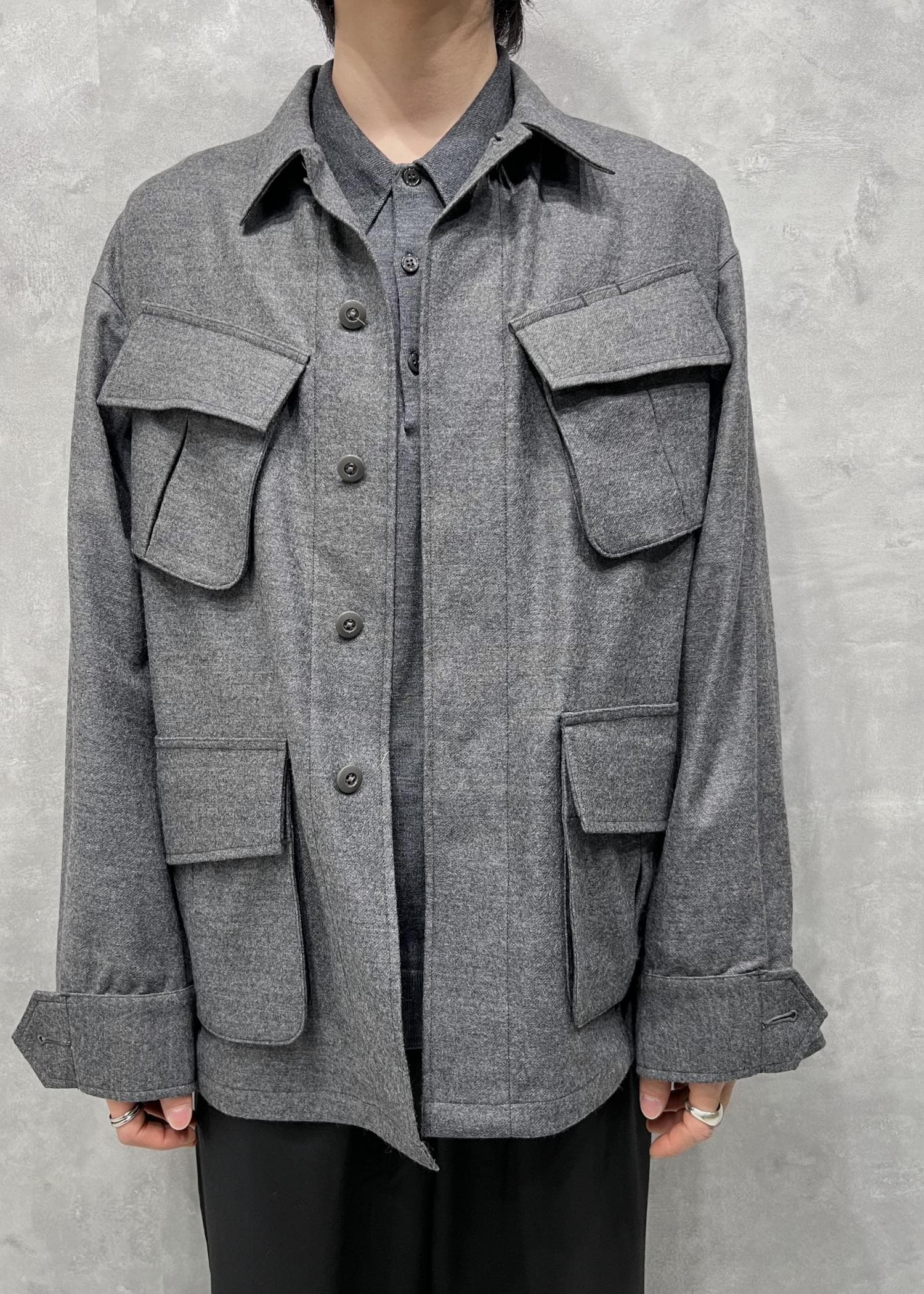 気持ちゆったり目です。袖丈は長め。