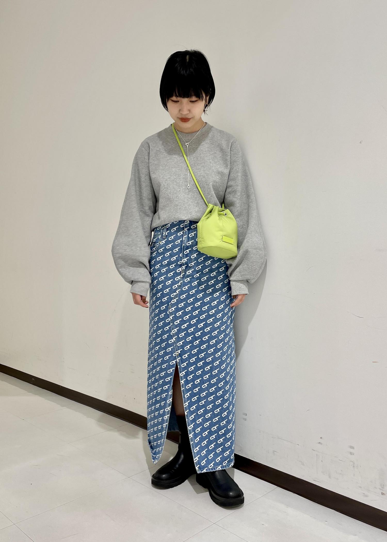 こちらのスウェットがシンプルめなのでロゴ有りのデニムスカートを選んでみました〜!全体的な色合いがかなり春らしいですよね✿