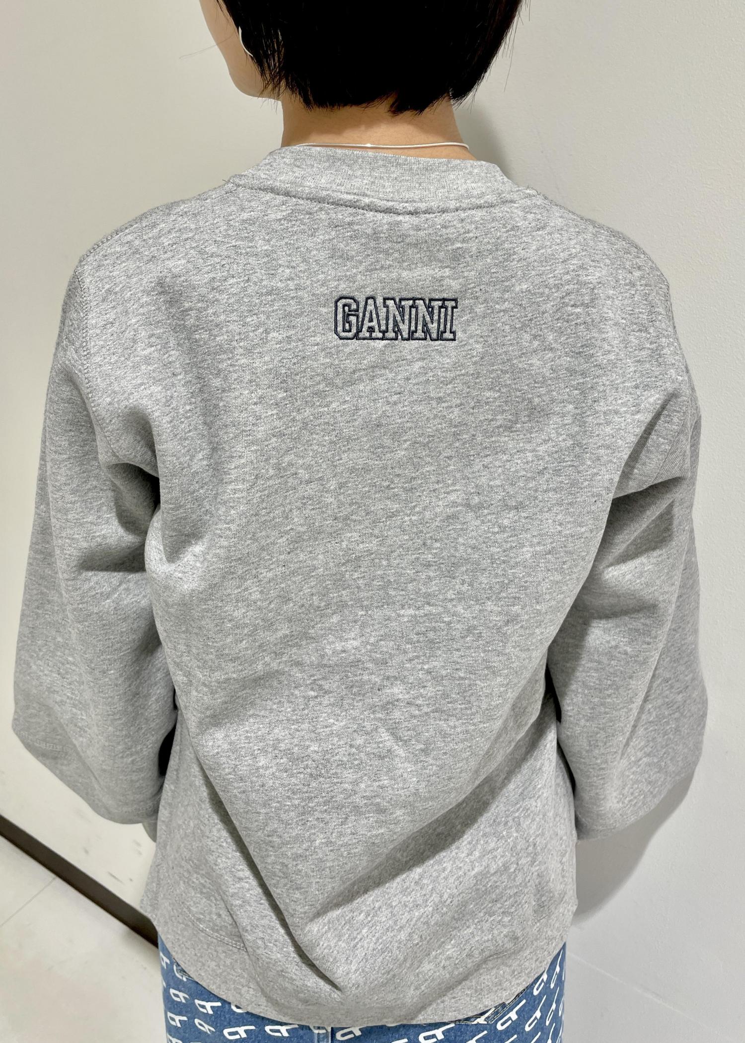 私のおすすめは黒、ベージュ、グレーの3色展開しているGANNIのパフスウェット。袖のシルエットがとっても可愛く、首元のロゴもポイントなんです!!