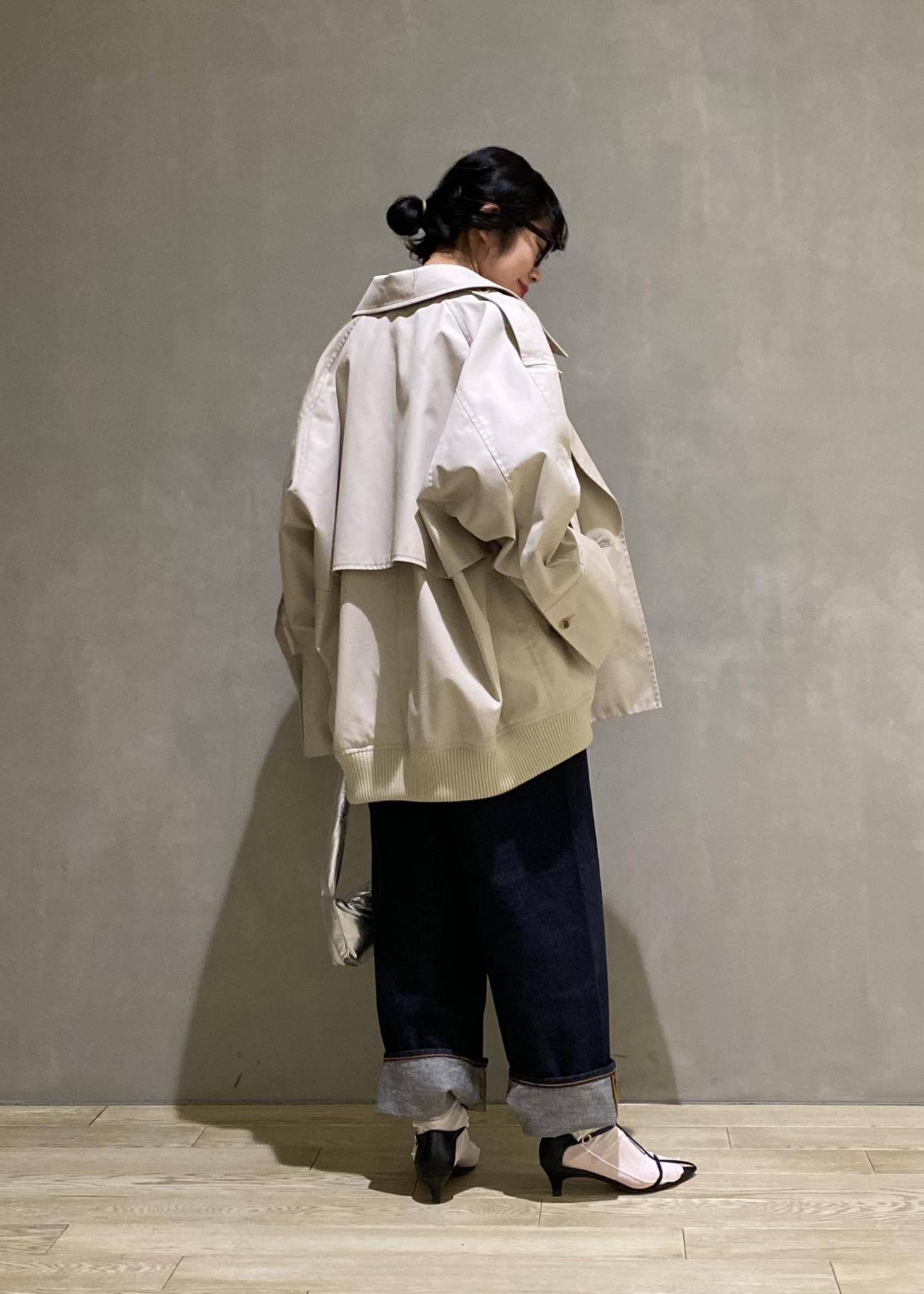 サイズもかなりオーバーサイズで個性的なトレンチ。