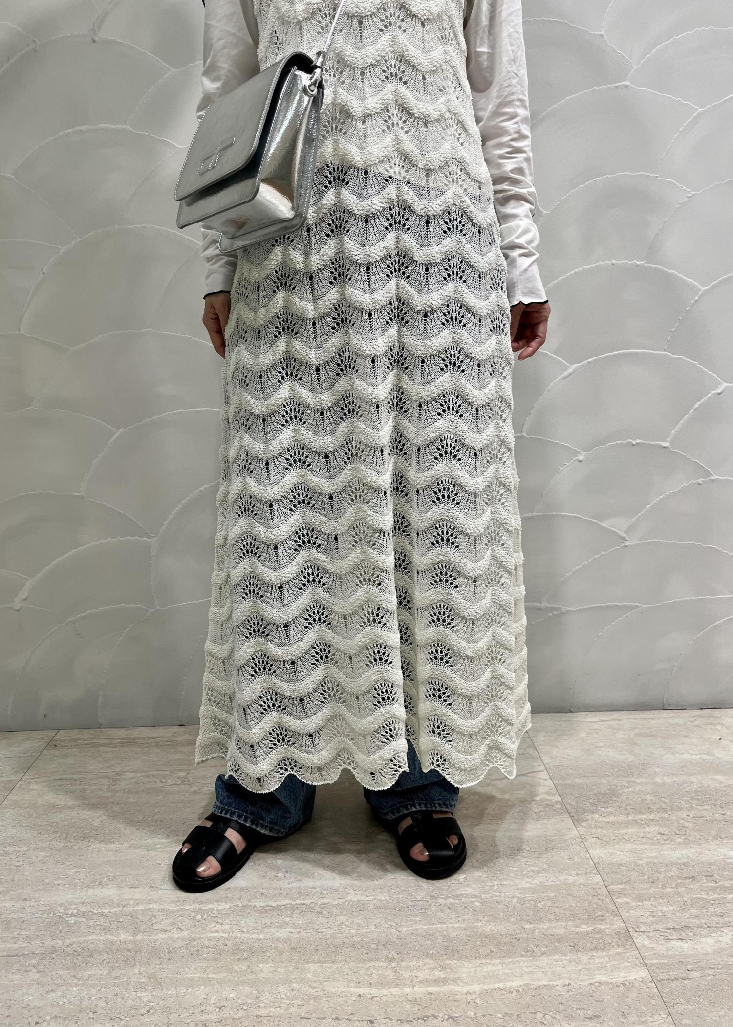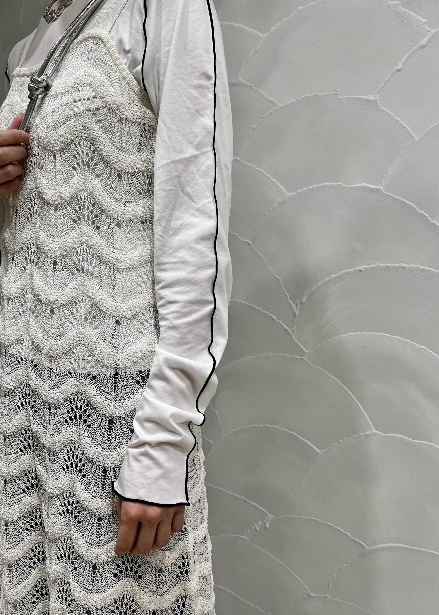 レース編みのようなデザインで、インナーにプリントTシャツや夏にはノースリーブを合わせても○