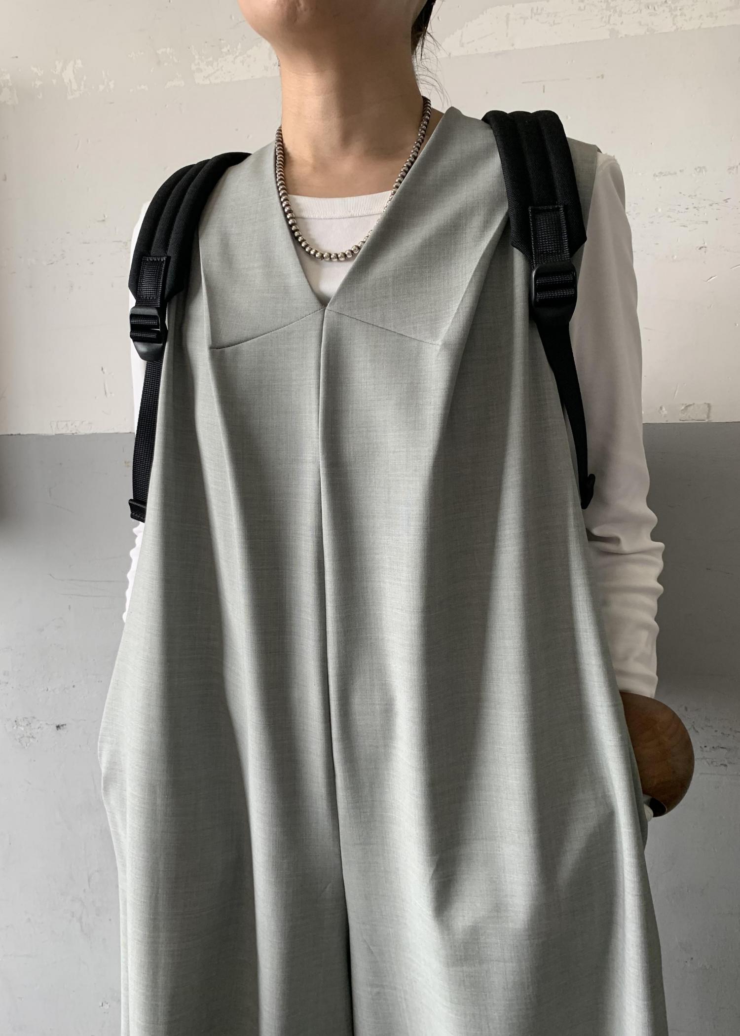 リアバイした肩パッド入りのカットソーはデコルテの開きや
